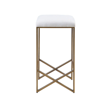 Backless Upholstered Counter Stool With Padded Seat - Ivory / Bronze