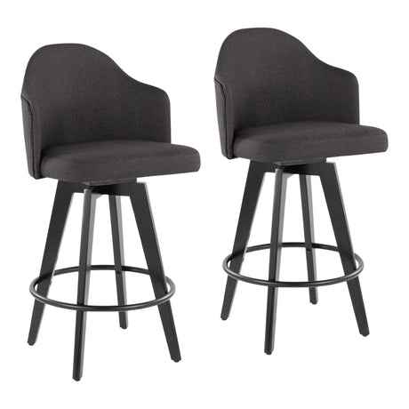Ahoy - Counter Stool - Wood Legs And Round Metal Footrest Fabric Seat (Set of 2)