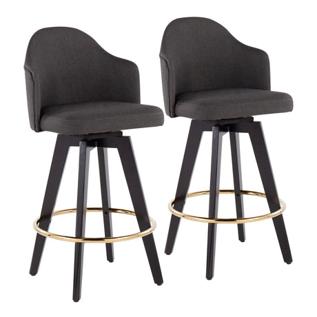 Ahoy - Upholstered Fixed-Height Barstool (Set of 2) - Black Base, Gold Footrest
