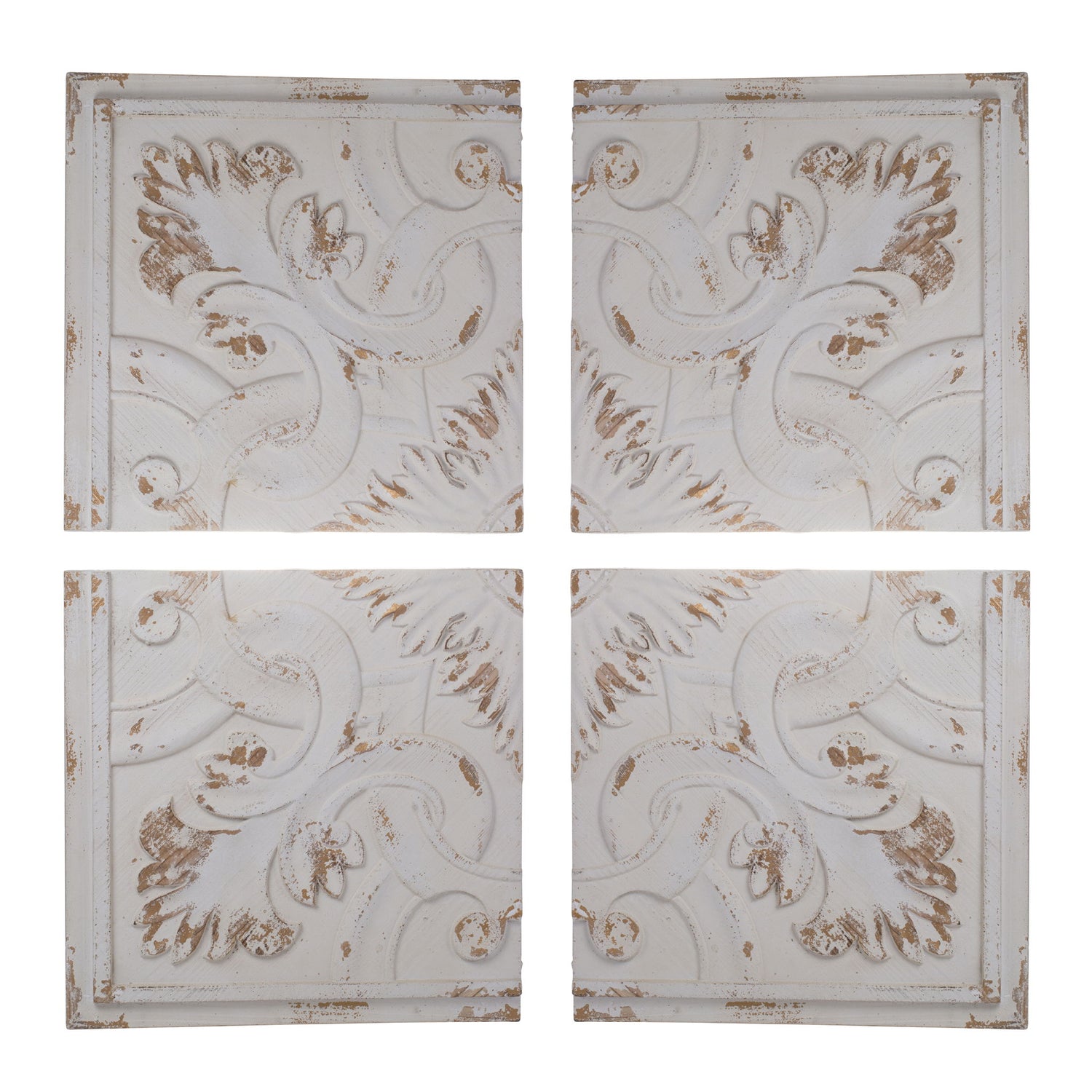 Distressed Wooden Square Wall Panels (Set of 4) - White