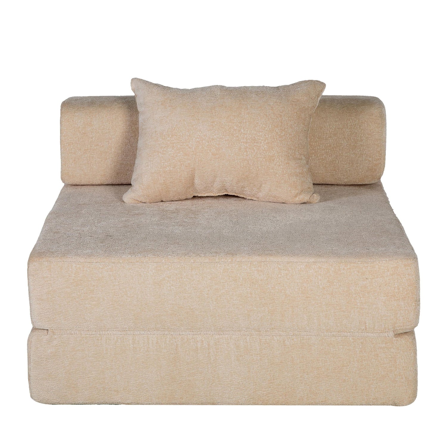 Convertible Floor Sofa Bed With Fixed Shape Frame For Living Room - Beige