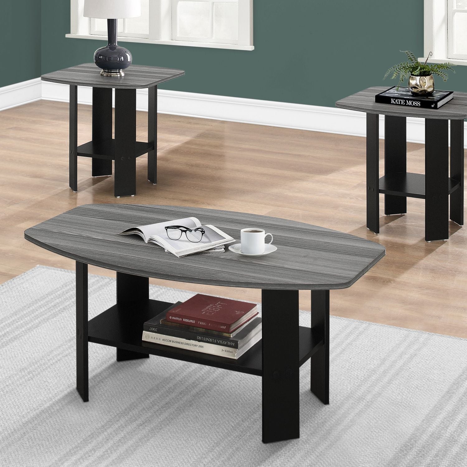 - Complete Set: 3-piece set includes 1 coffee table and 2 matching end tables, providing ample surface space and lower shelves for storage.