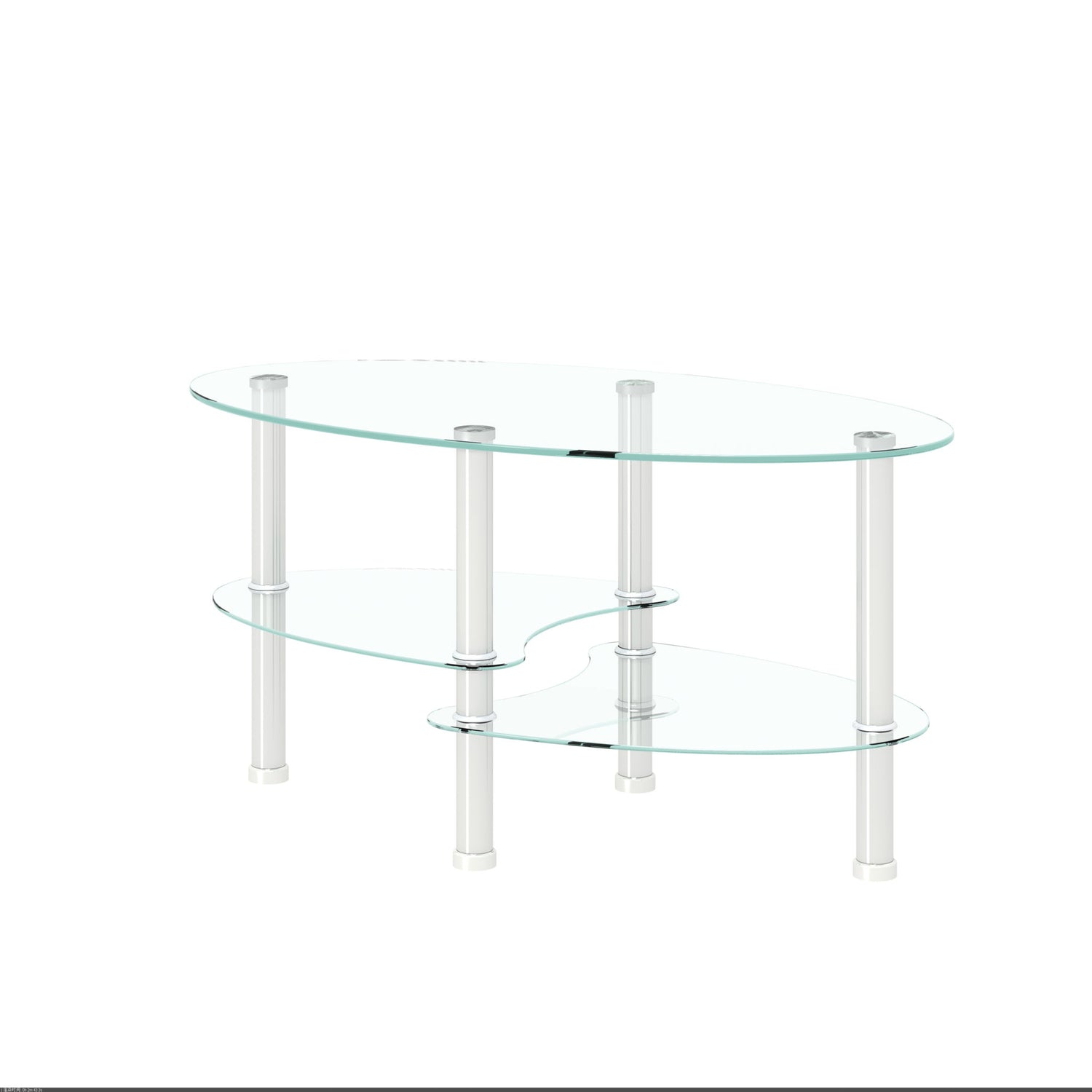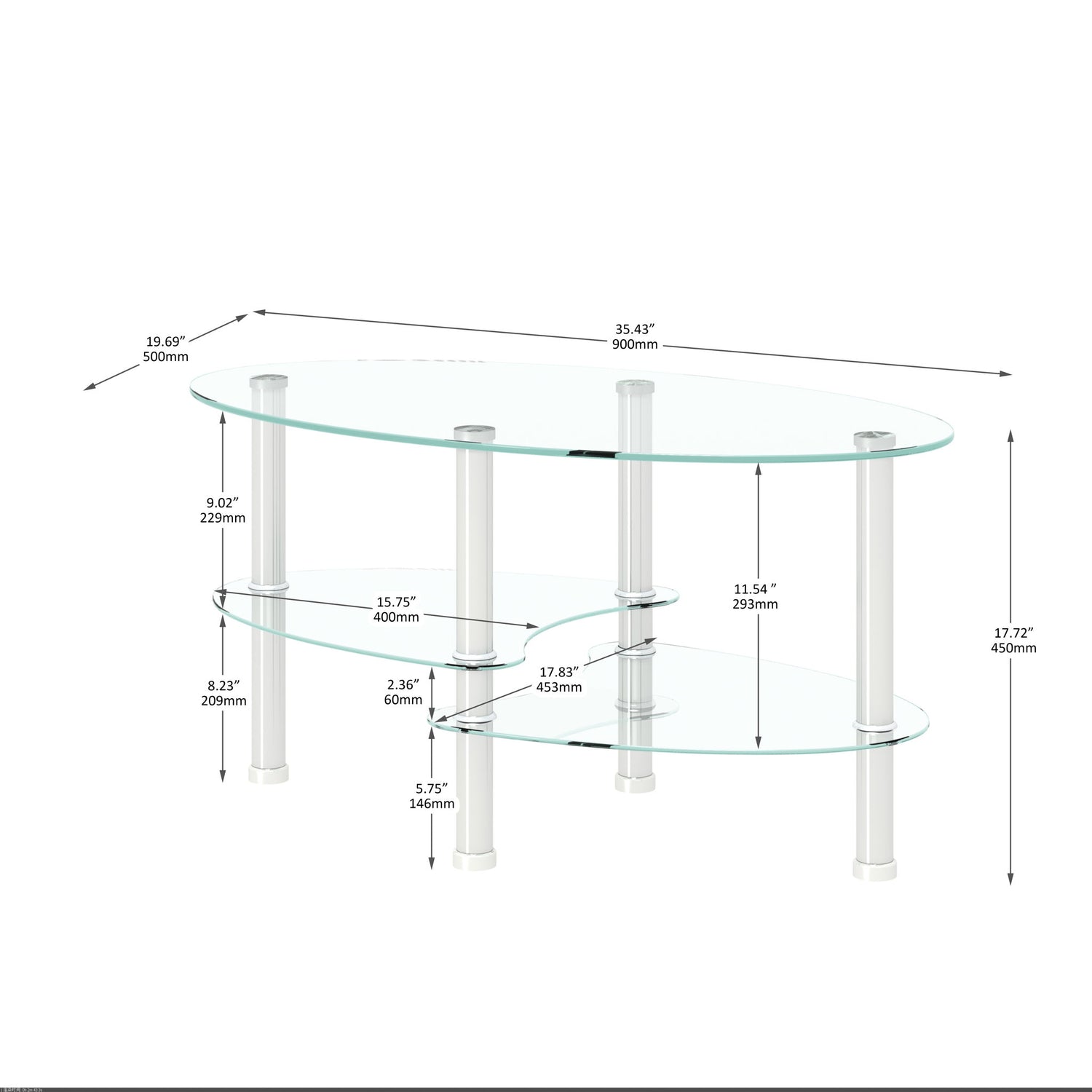 Transparent Oval Glass Coffee Table, Modern Table With Stainless Steel Leg, Tea Table 3-Layer Glass Table For Living Room - Transparent / White