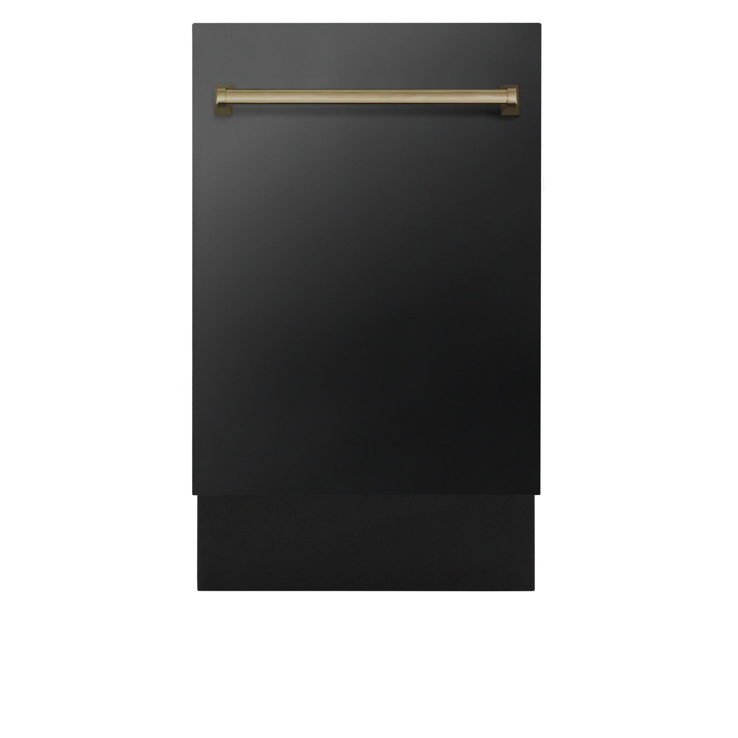ZLINE Autograph Edition 18' Compact 3rd Rack Top Control Dishwasher in Black Stainless Steel with Accent Handle, 51dBa (DWVZ-BS-18) [Color: Champagne Bronze] - (DWVZBS18CB)