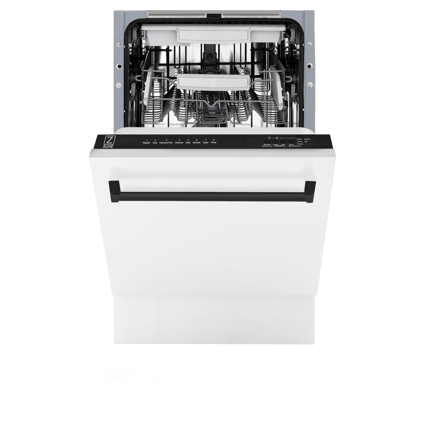 ZLINE Autograph Edition 18" Compact 3rd Rack Top Control Dishwasher in White Matte with Matte Black Handle, 51dBa (DWVZ-WM-18-MB)