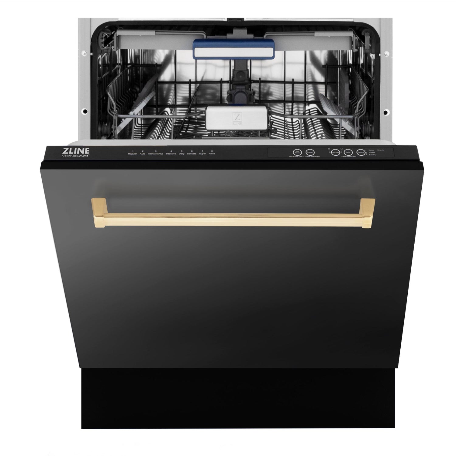 ZLINE Autograph Edition 24" 3rd Rack Top Control Tall Tub Dishwasher in Black Stainless Steel with Accent Handle, 51dBa (DWVZ-BS-24) [Color: Champagne Bronze]