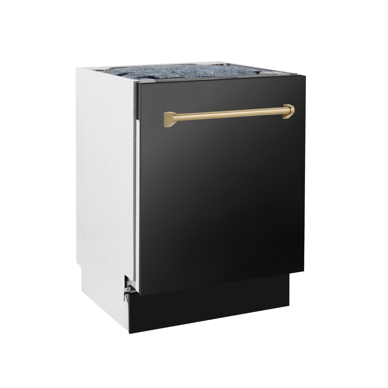 ZLINE Autograph Edition 24" 3rd Rack Top Control Tall Tub Dishwasher in Black Stainless Steel with Accent Handle, 51dBa (DWVZ-BS-24) [Color: Champagne Bronze] - (DWVZBS24CB)