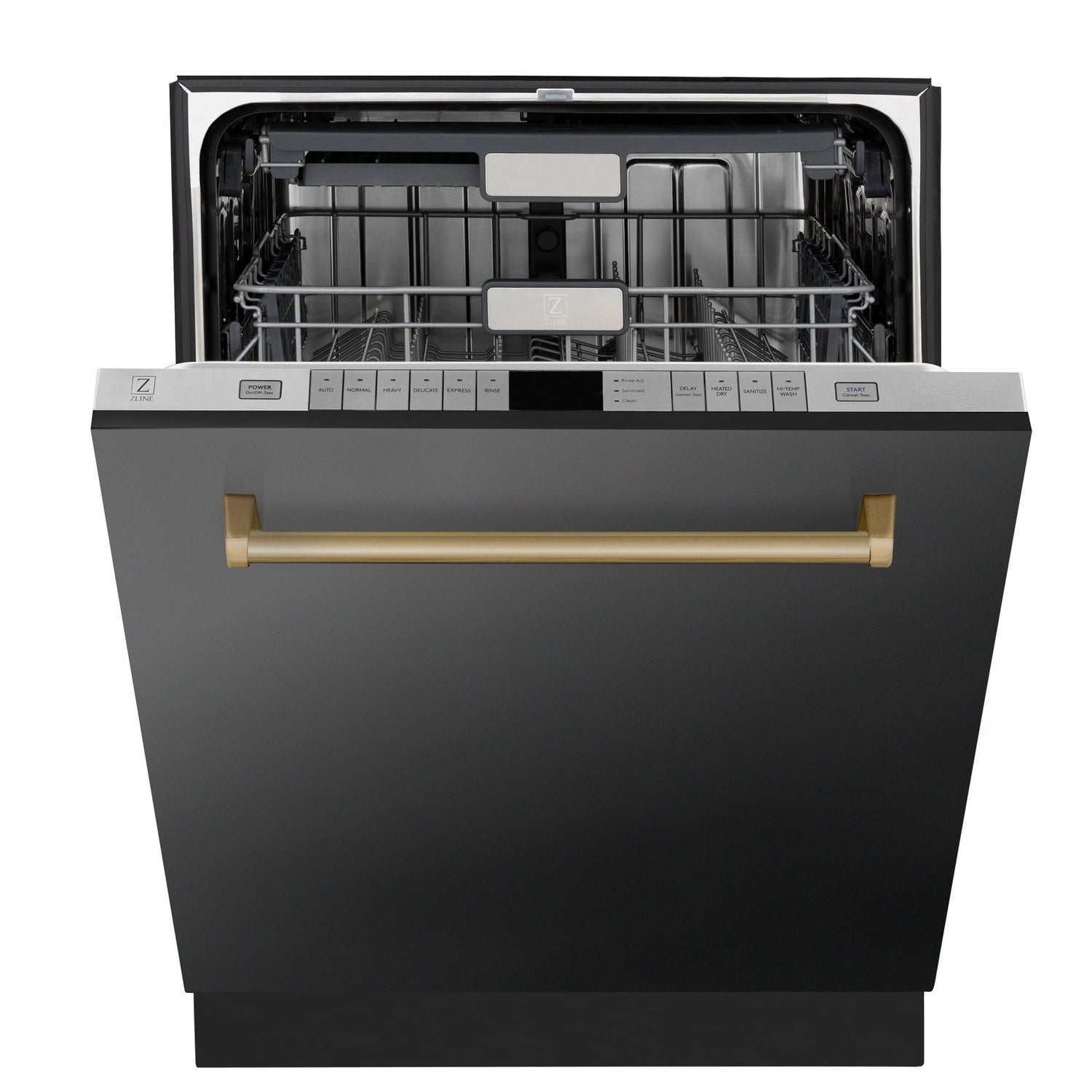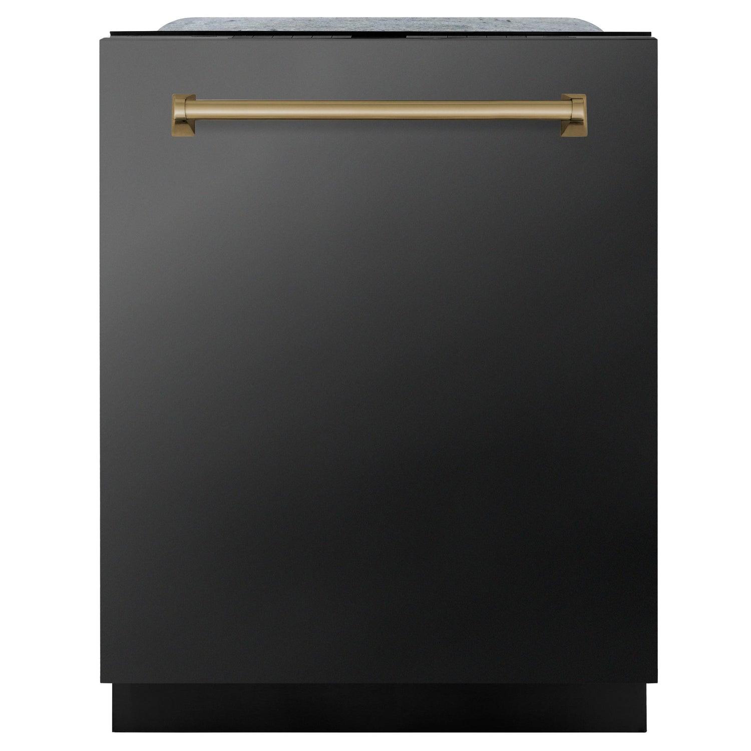 ZLINE Autograph Edition 24" 3rd Rack Top Touch Control Tall Tub Dishwasher in Black Stainless Steel with Accent Handle, 45dBa (DWMTZ-BS-24) [Color: Champagne Bronze] - (DWMTZBS24CB)