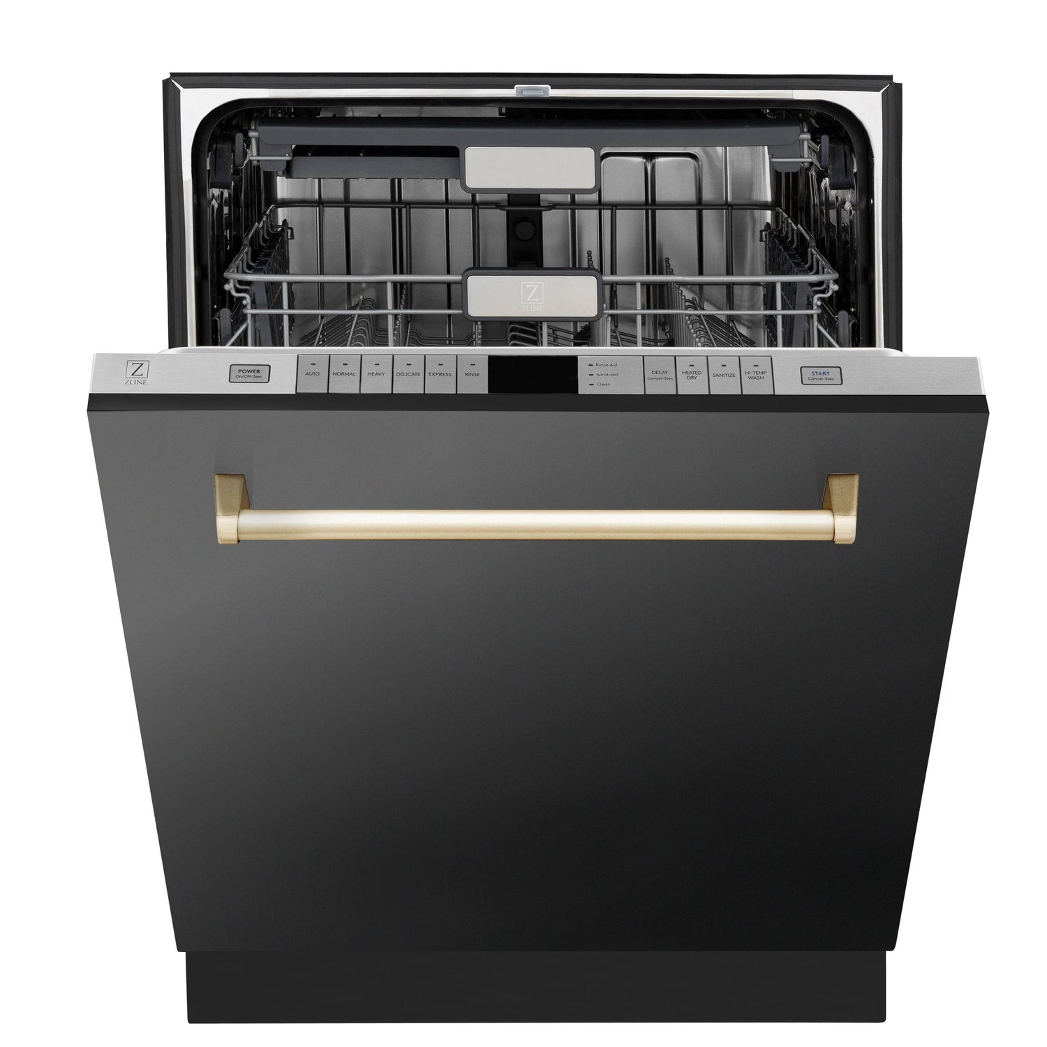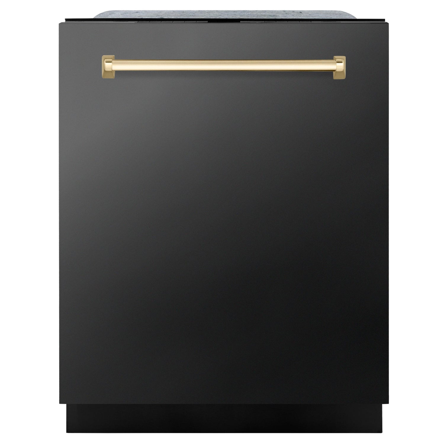 ZLINE Autograph Edition 24" 3rd Rack Top Touch Control Tall Tub Dishwasher in Black Stainless Steel with Accent Handle, 45dBa (DWMTZ-BS-24) [Color: Gold] - (DWMTZBS24G)