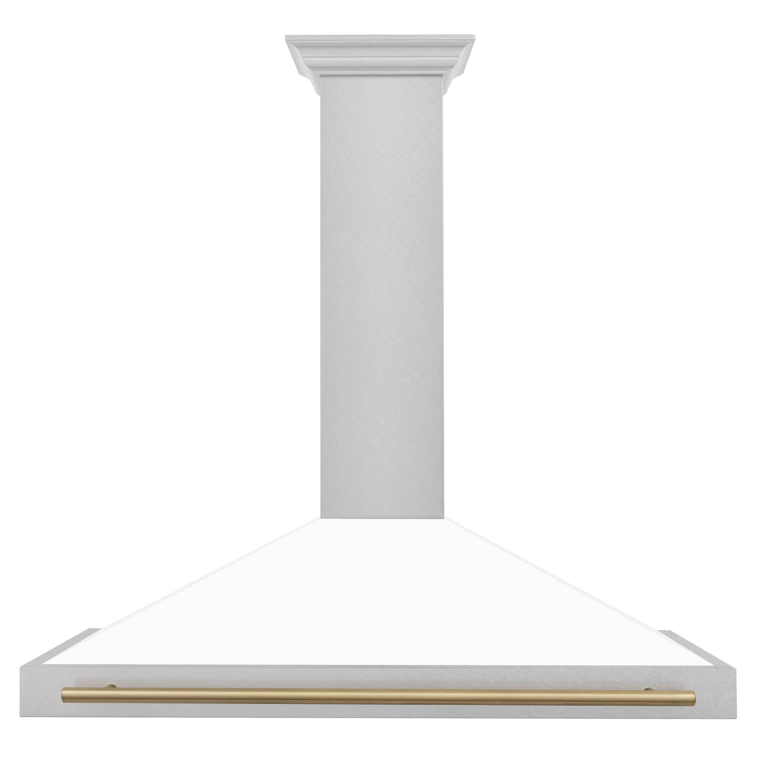 ZLINE 48 in. Autograph Edition DuraSnow Stainless Steel Range Hood with White Matte Shell and Accented Handles (KB4SNZ-WM48) [Color: Champagne Bronze Accents]