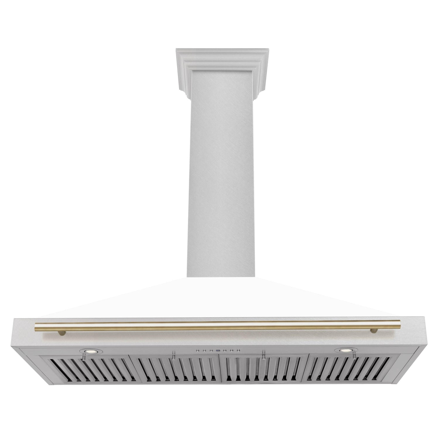 ZLINE 48 in. Autograph Edition DuraSnow Stainless Steel Range Hood with White Matte Shell and Accented Handles (KB4SNZ-WM48) [Color: Gold Accents] - (KB4SNZWM48G)