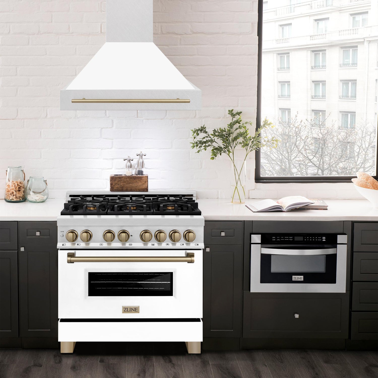 36 in. ZLINE Autograph Edition DuraSnow Stainless Steel Range Hood with White Matte Shell and Accented Handle (8654SNZ-WM36) [Color: Champagne Bronze]