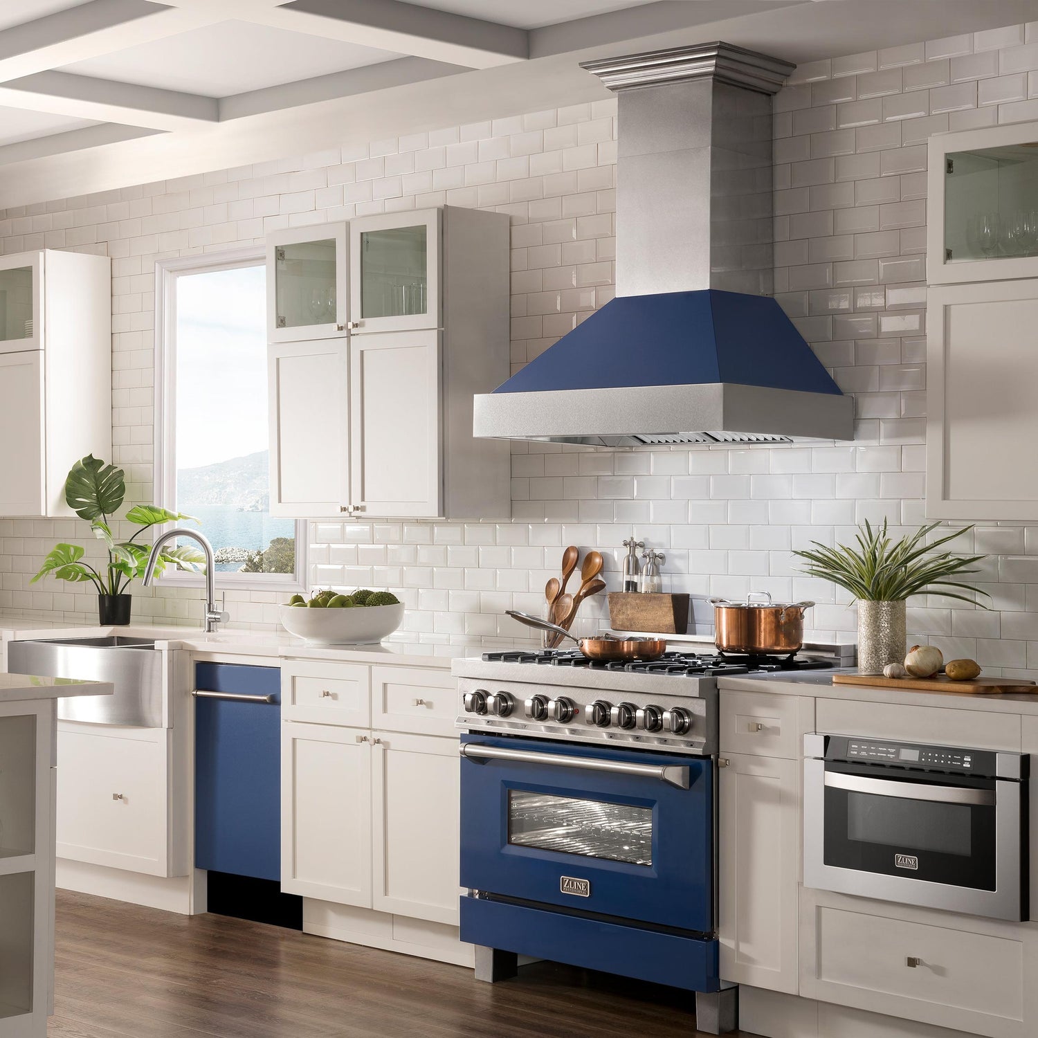ZLINE 18 in. Compact Top Control Dishwasher with Stainless Steel Tub and Traditional Handle, 52dBa (DW-18) [Color: Blue Matte] - (DWBM18)
