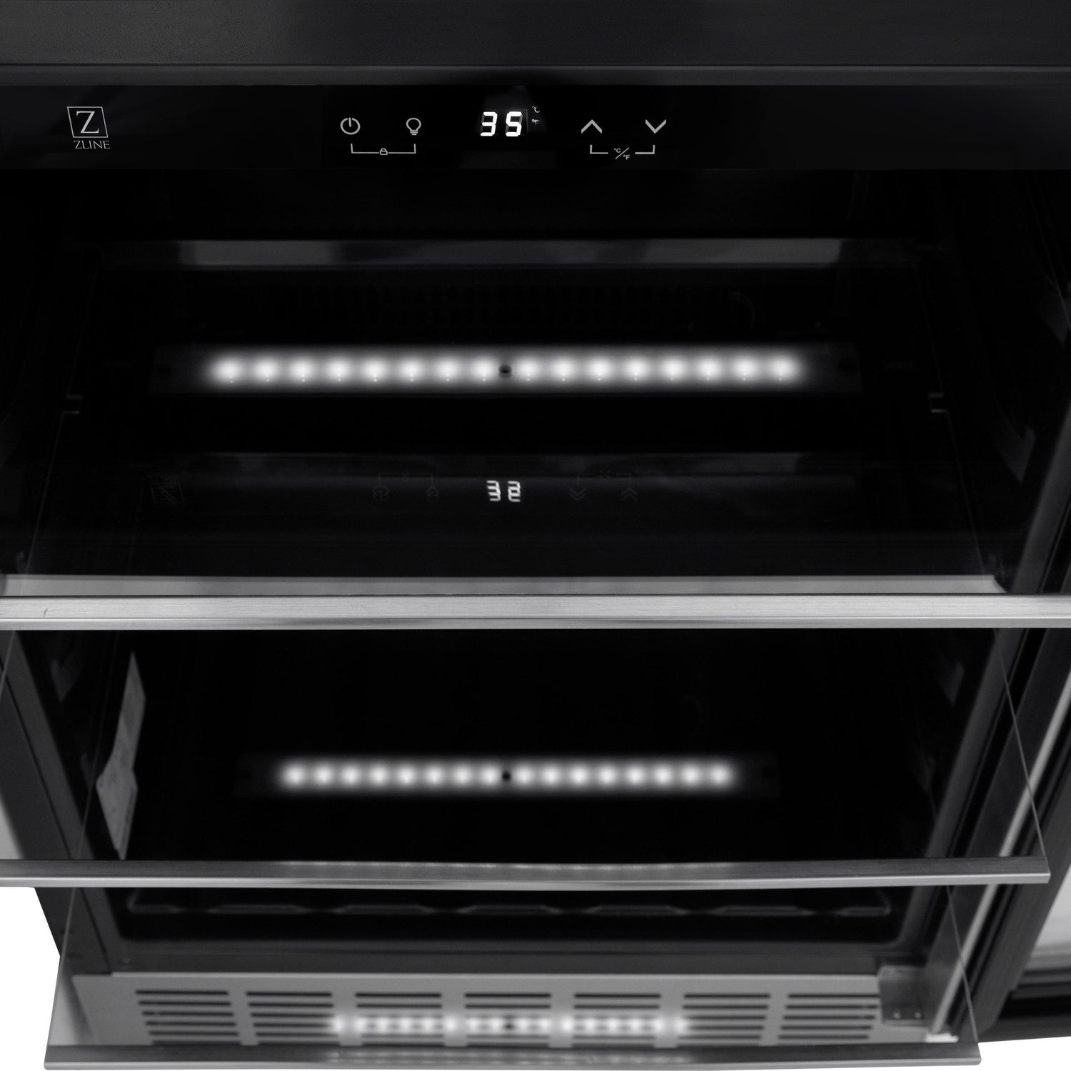 ZLINE 24" Autograph Edition 154 Can Beverage Cooler Fridge with Adjustable Shelves in Stainless Steel with Polished Gold Accents (RBVZ-US-24-G)