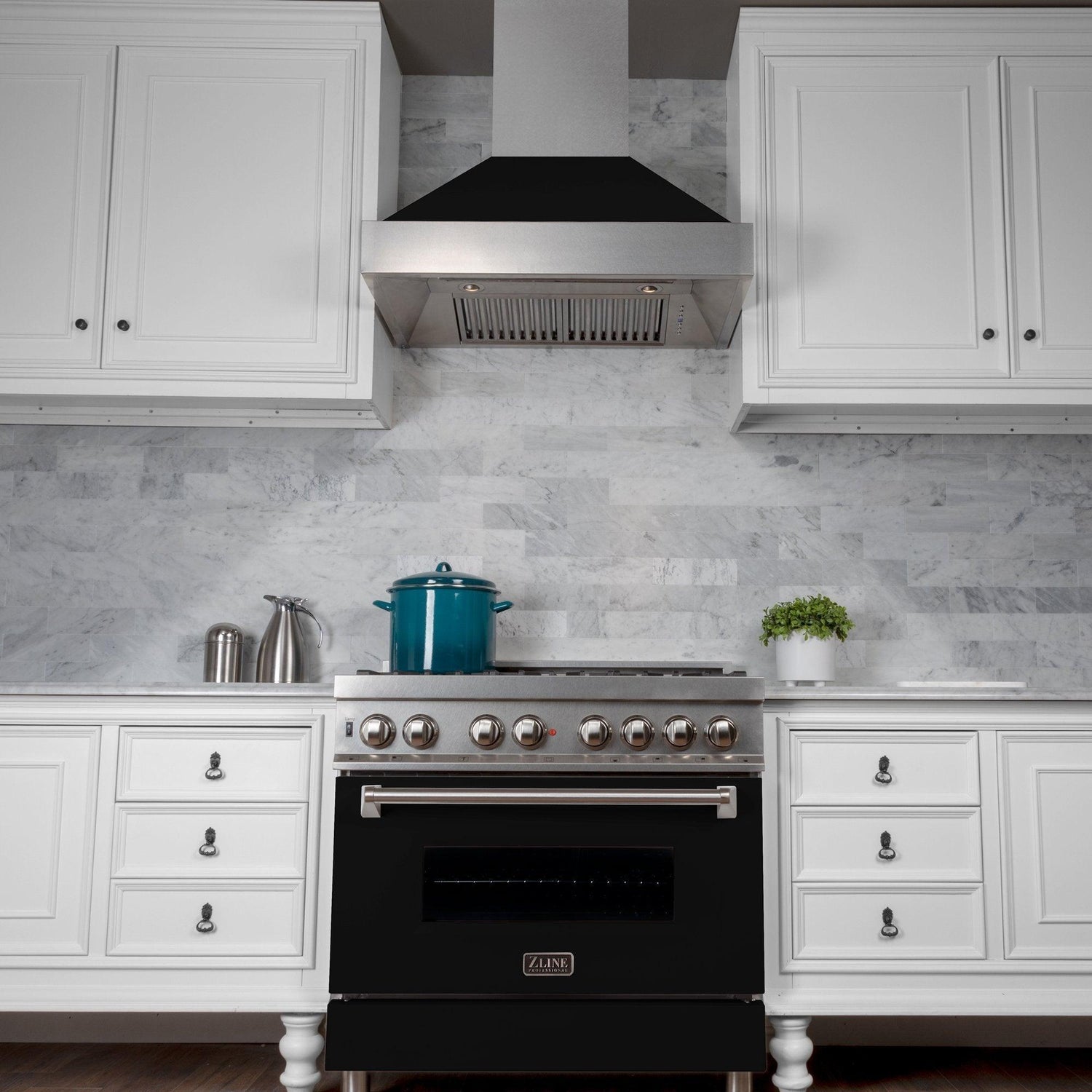 ZLINE Ducted DuraSnow Stainless Steel Range Hood with Black Matte Shell (8654BLM) - (8654BLM36)