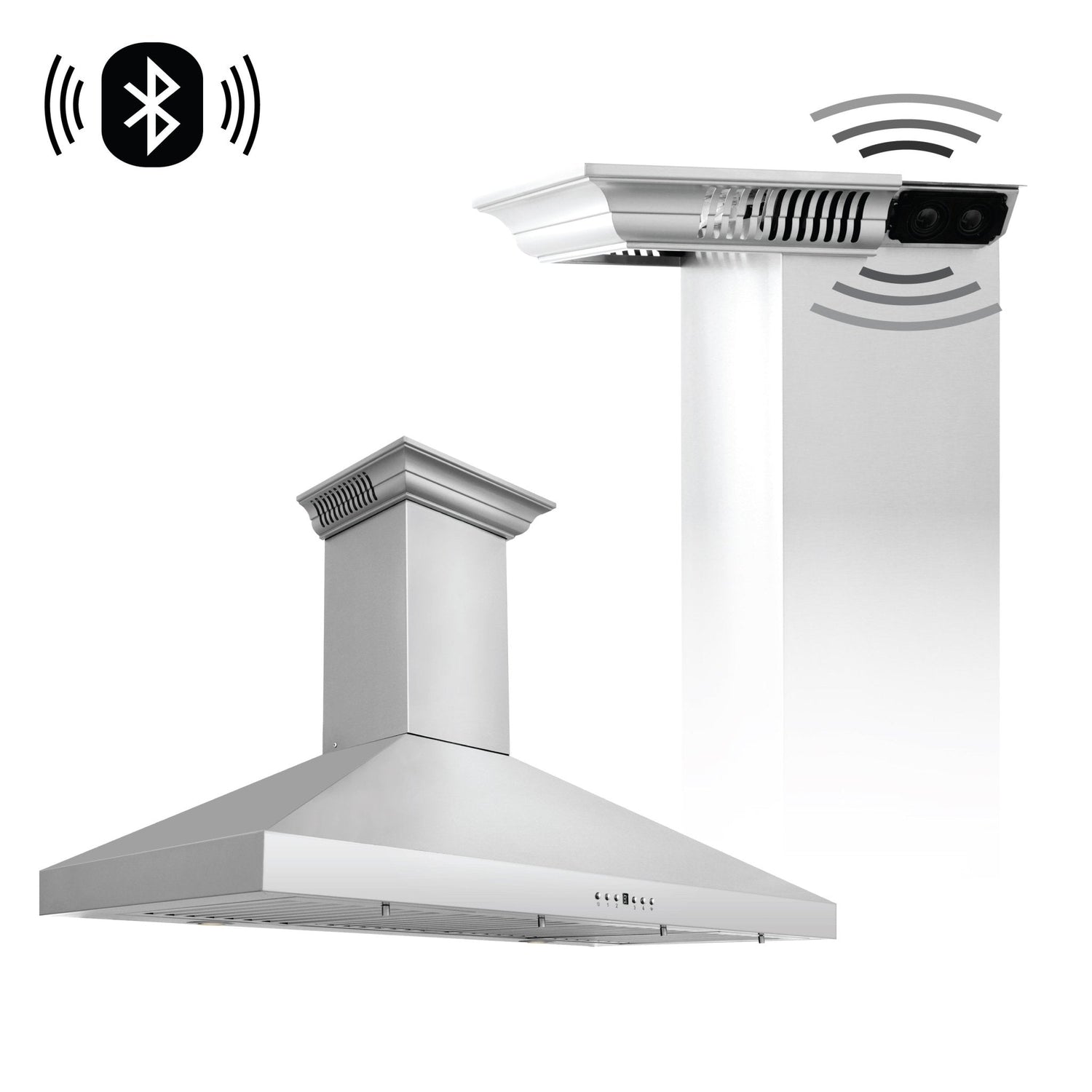ZLINE Ducted Vent Wall Mount Range Hood in Stainless Steel with Built-in ZLINE CrownSound Bluetooth Speakers (KL3CRN-BT)
