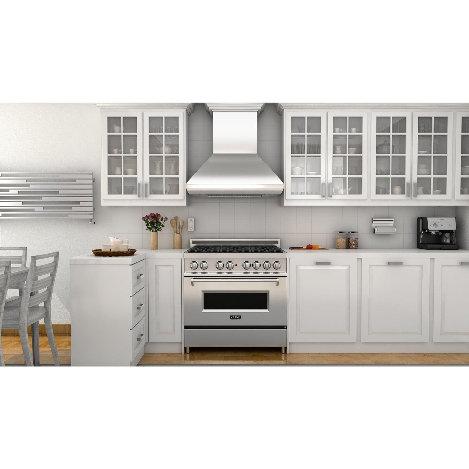 ZLINE Professional Convertible Vent Wall Mount Range Hood in Stainless Steel with Crown Molding (587CRN)