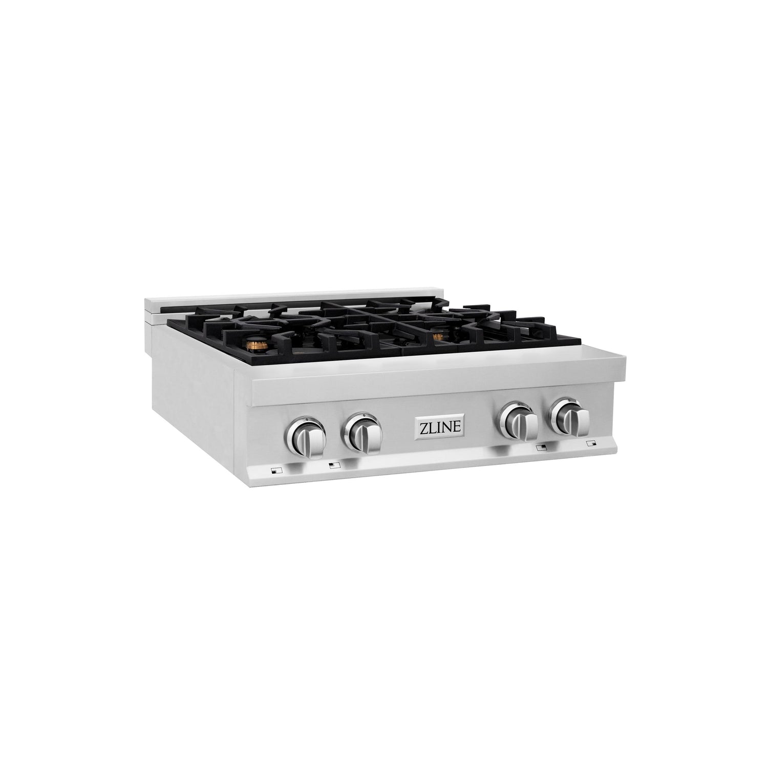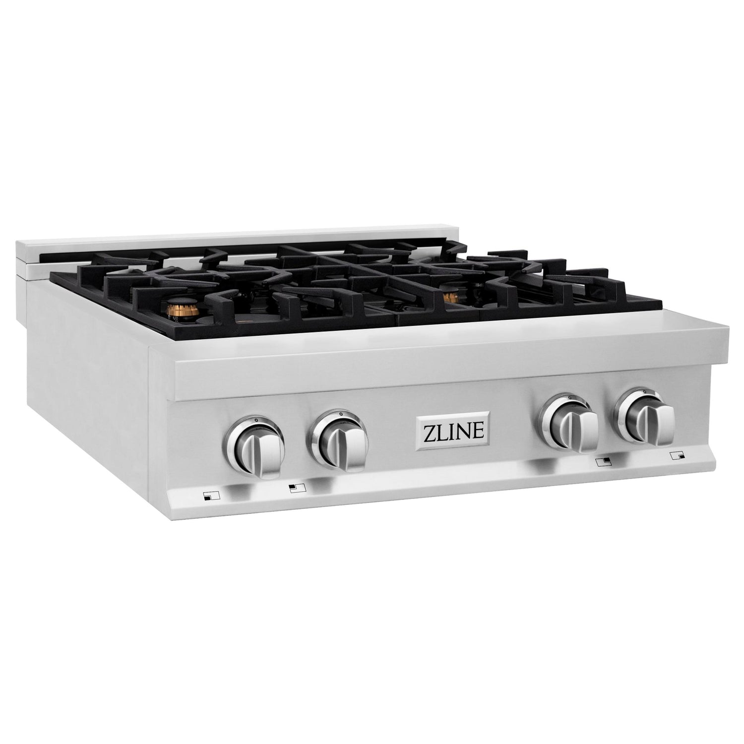 ZLINE 30 in. Porcelain Gas Stovetop with 4 Gas Burners (RT30) Available with Brass Burners [Color: Stainless Steel with Brass Burners]