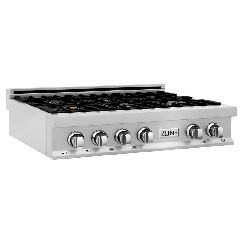 ZLINE 36 in. Porcelain Rangetop in DuraSnow Stainless Steel with 6 Gas Burners (RTS-36) Available with Brass Burners [Color: DuraSnow Stainless Steel with Brass Burners] - (RTSBR36)