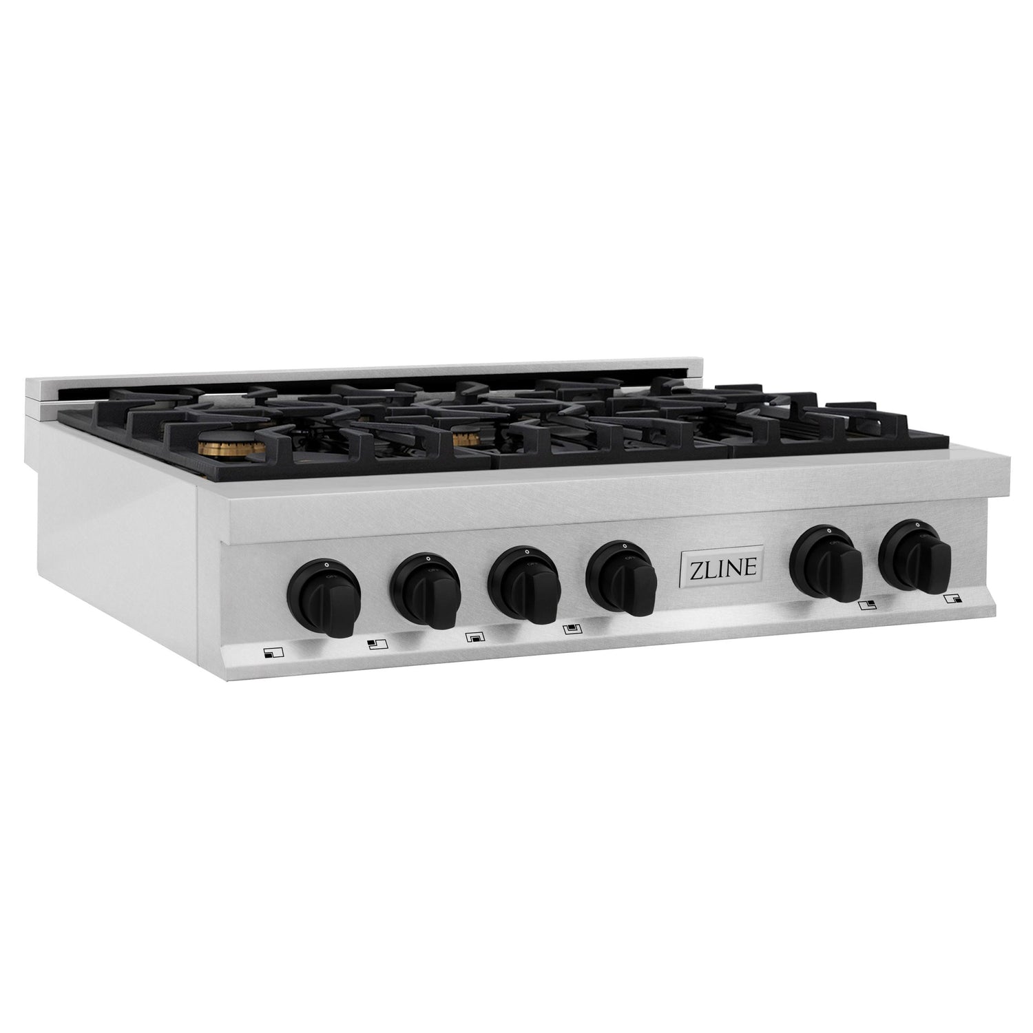 ZLINE Autograph Edition 36" Porcelain Rangetop with 6 Gas Burners in Fingerprint Resistant Stainless Steel and Matte Black Accents (RTSZ-36-MB) - (RTSZ36MB)