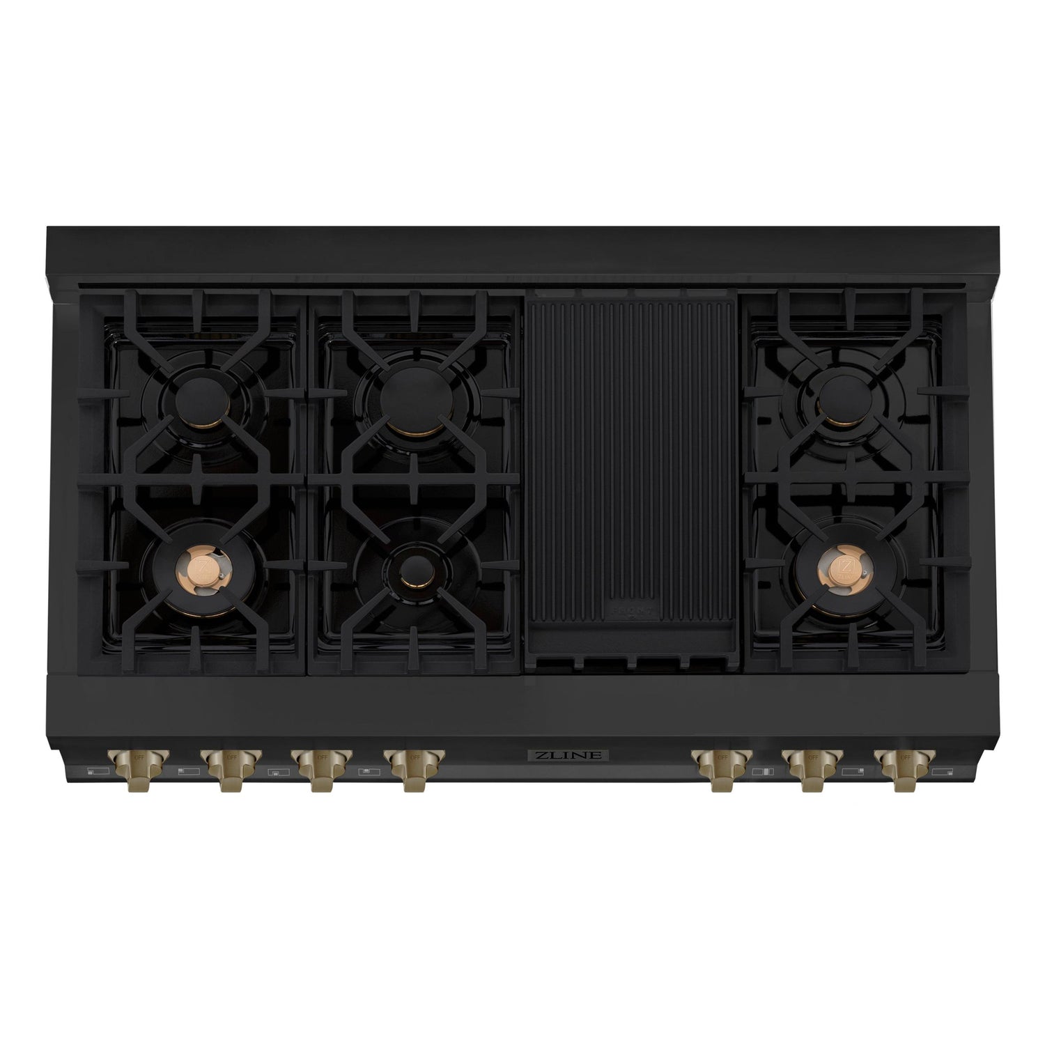ZLINE Autograph Edition 48 in. Porcelain Rangetop with 7 Gas Burners in Black Stainless Steel and Champagne Bronze Accents (RTBZ-48-CB) [Color: Champagne Bronze] - (RTBZ48CB)
