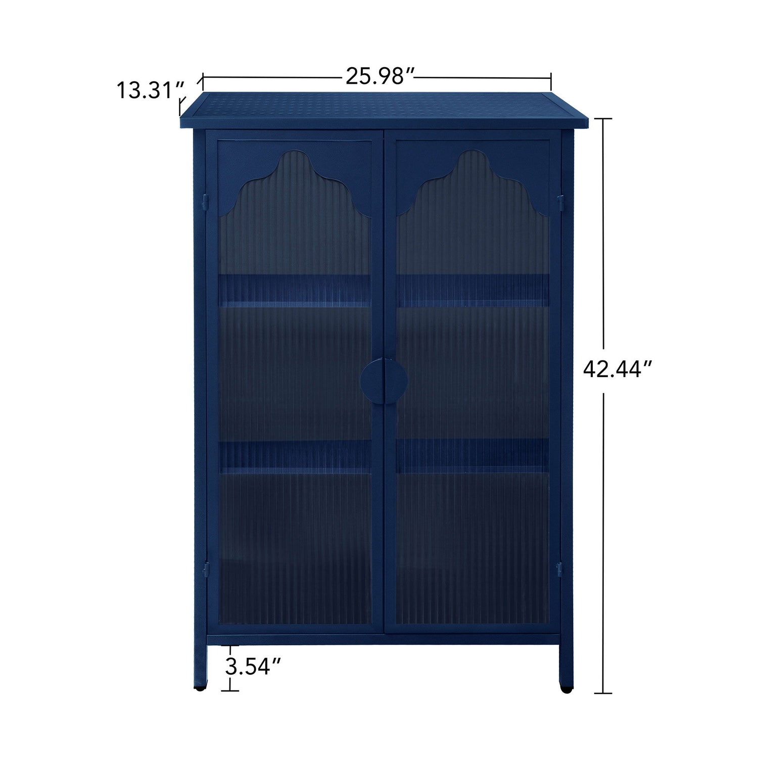 2 Doors Metal Storage Cabinet Display Cabinet With Glass Doors Metal Kitchen Sideboard Buffet Cabinet Glass Storage Cabinet For Dining Room Living Room Bedroom - Dark Blue