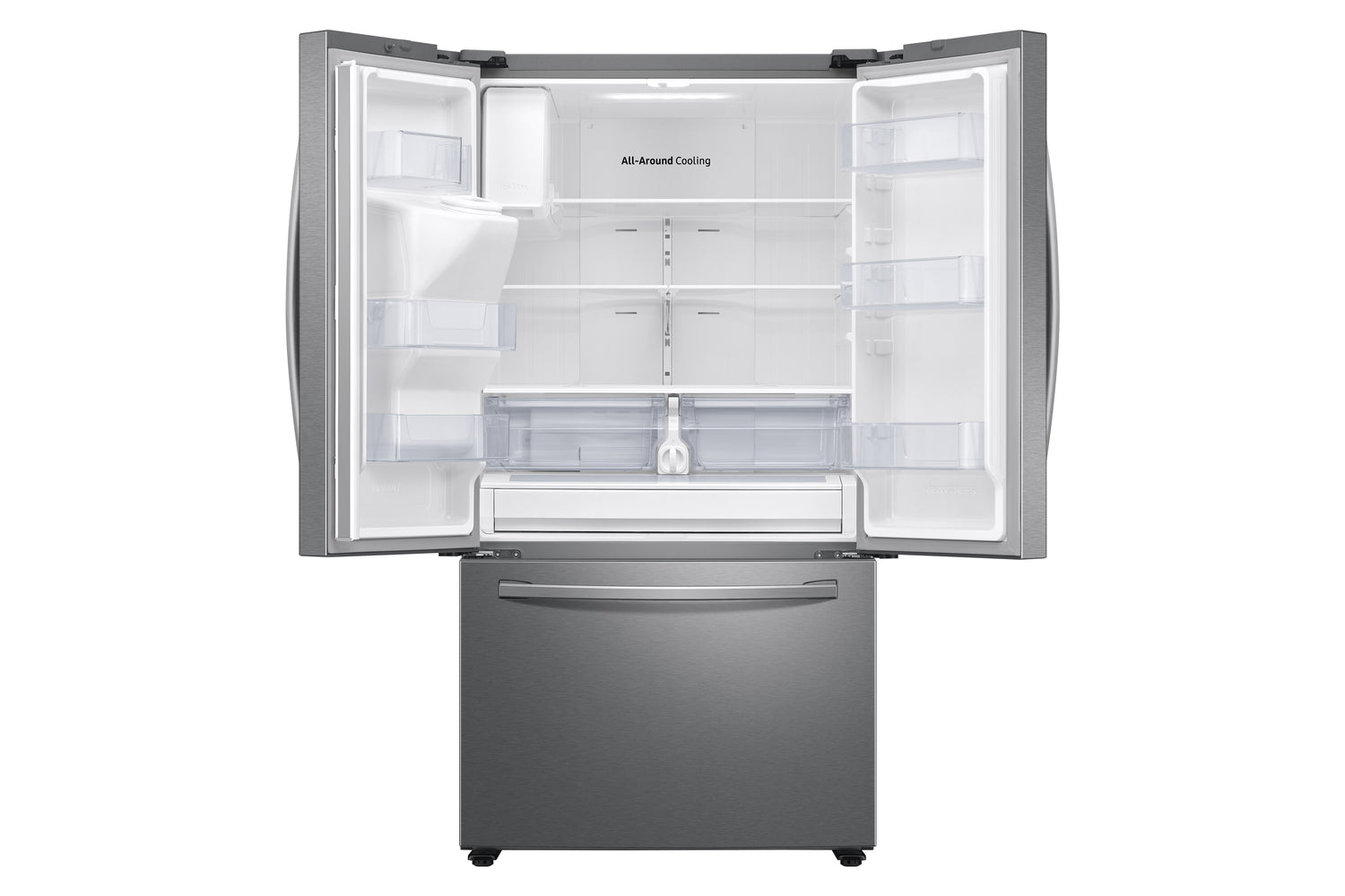 (B)More space, more ways to stay organized(/B)(P)The new 3-Door French Door model is redesigned with a 27 cu. Ft. interior that fits more groceries than ever before, for fewer trips to the store.(/P)(BR)(B)As beautiful as it is functional(/B)(P)Modern design, clean lines, and seamless features make this a showcase piece that enhances your kitchen in more ways than one.(/P)(BR)(B)A full-width drawer that fits in with your everyday needs (/B)(P)Store party platters, deli items, beverages and so much more with a large drawer that makes organizing a breeze. (/P)(BR)(B)Ice Max ensures you have all the ice you need(/B)(P)Enjoy the convenience of a large capacity ice maker that holds up to 4.2 lbs. of ice.(/P)(BR)(B)Keep every item evenly cooled(/B)(P)All-Around Cooling and multi-vent technology maintain even air circulation on every shelf for a consistent temperature throughout.(/P)(BR)(B)Make meal planning easy(/B)(P)Search recipes and grocery shop through apps right on your fridge. Stay he