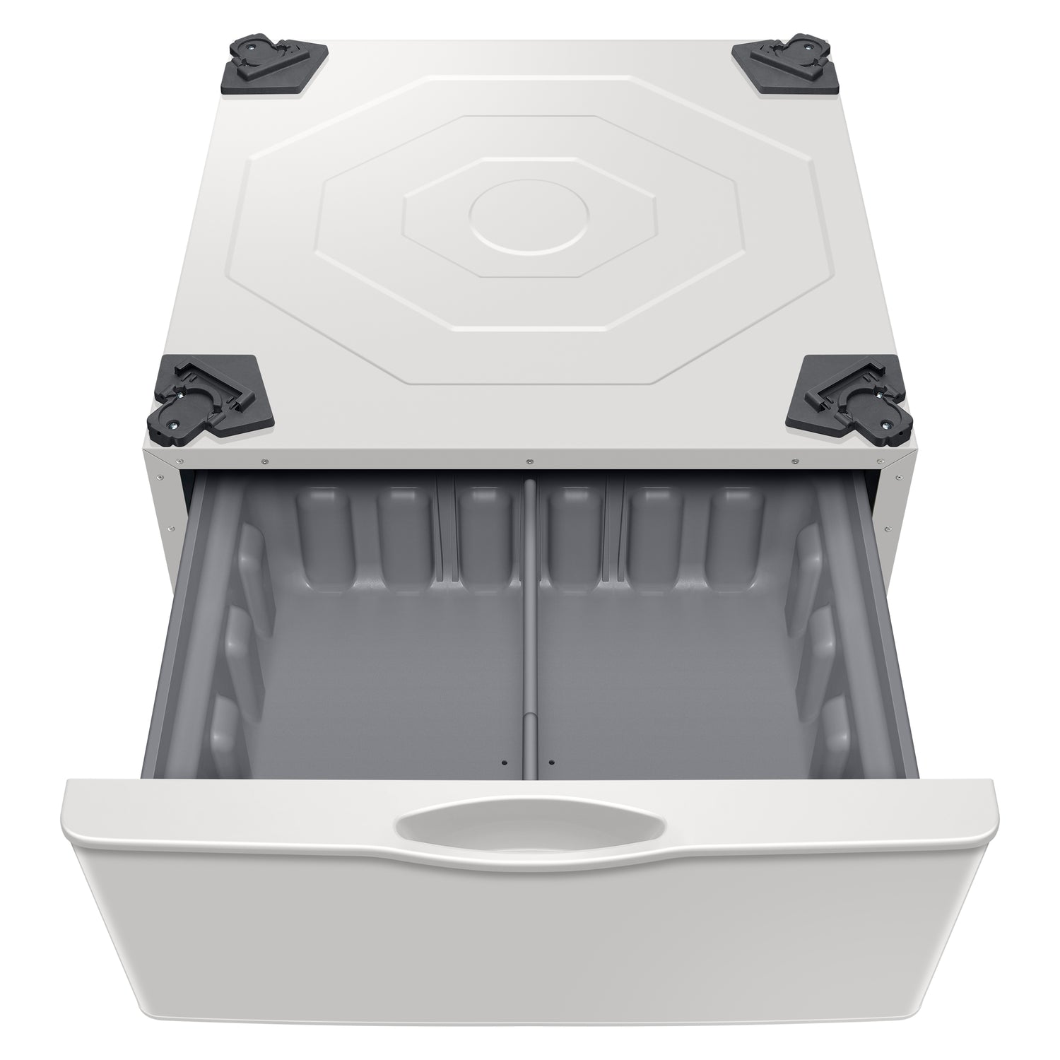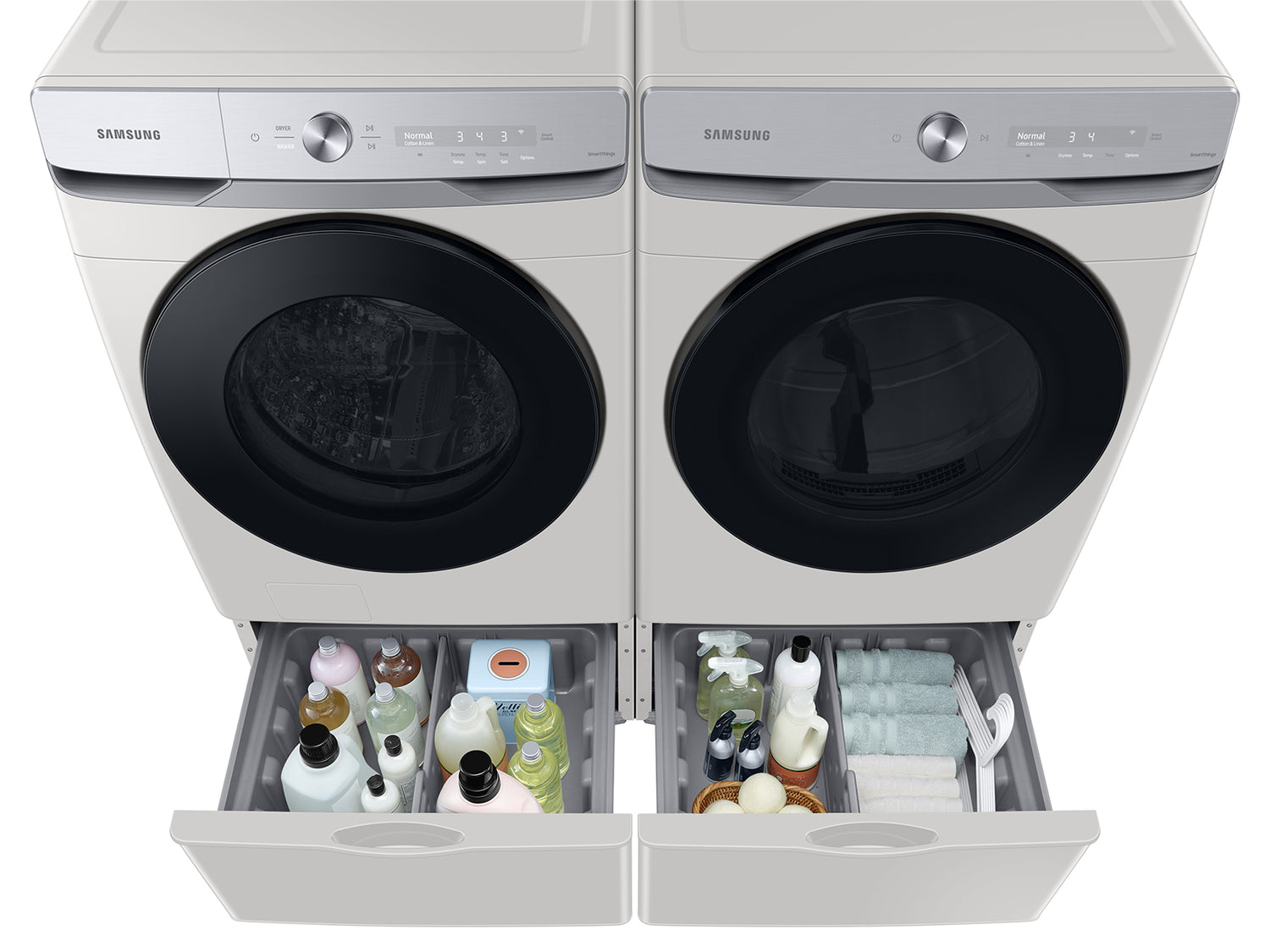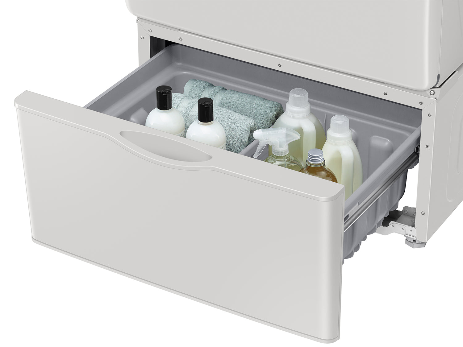 (B)About this Product(/B)(P)This 27" wide pedestal will allow you to lift your Samsung Front Load washer or dryer by more than a foot for a more convenient height. Tidy up your laundry space with an easily accessible built-in storage drawer.(/P)