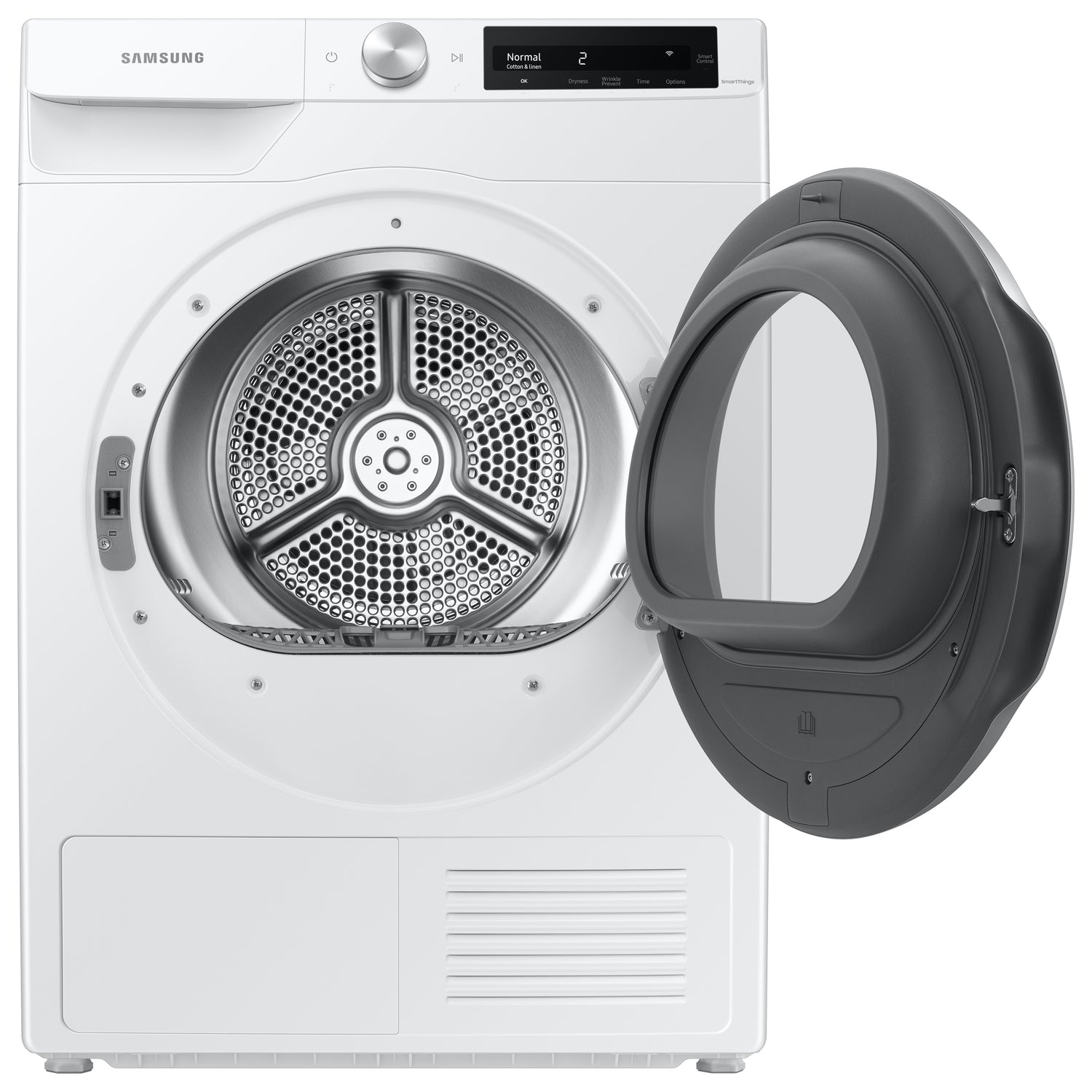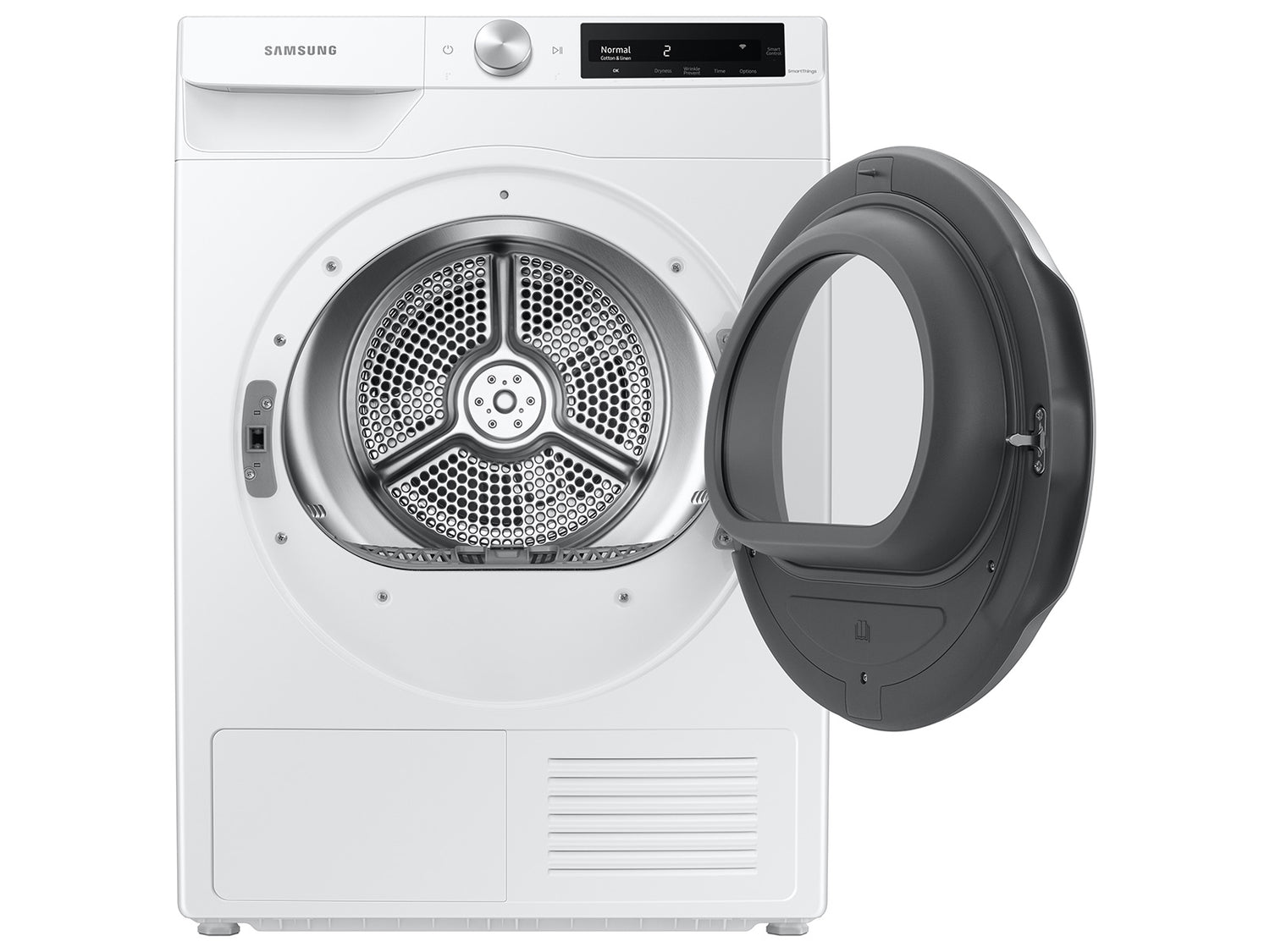 (B)Ventless dryer option(/B)(P)Heat Pump Technology offers a more energy-efficient, cost-effective and gentle way to dry your clothes. Plus, its ventless design allows for simple installation in a variety of places.(/P)(BR)(B)Make your laundry routine more simple(/B)(P)Samsung's easy to use, AI Smart Dial simplifies your dryer's control panel, learns and recommends your favorite cycles, and allows you to customize your cycle list, making laundry day a breeze.(/P)(BR)(B)Worry-free drying(/B)(P)Automatically optimizes the time and temperature of your drying cycle to protect your clothes from heat damage, while avoiding excess energy use.(/P)(BR)(B)The perfect mix of size and function(/B)(P)Conveniently designed to fit your space without sacrificing capacity.(/P)(BR)(B)Space-saving design(/B)(P)With its compact profile, this dryer is designed for easy closet installation, without sacrificing capacity. (/P)(BR)(B)Stop the fluff(/B)(P)Worry less about lint or fluff blocking the dryer's air