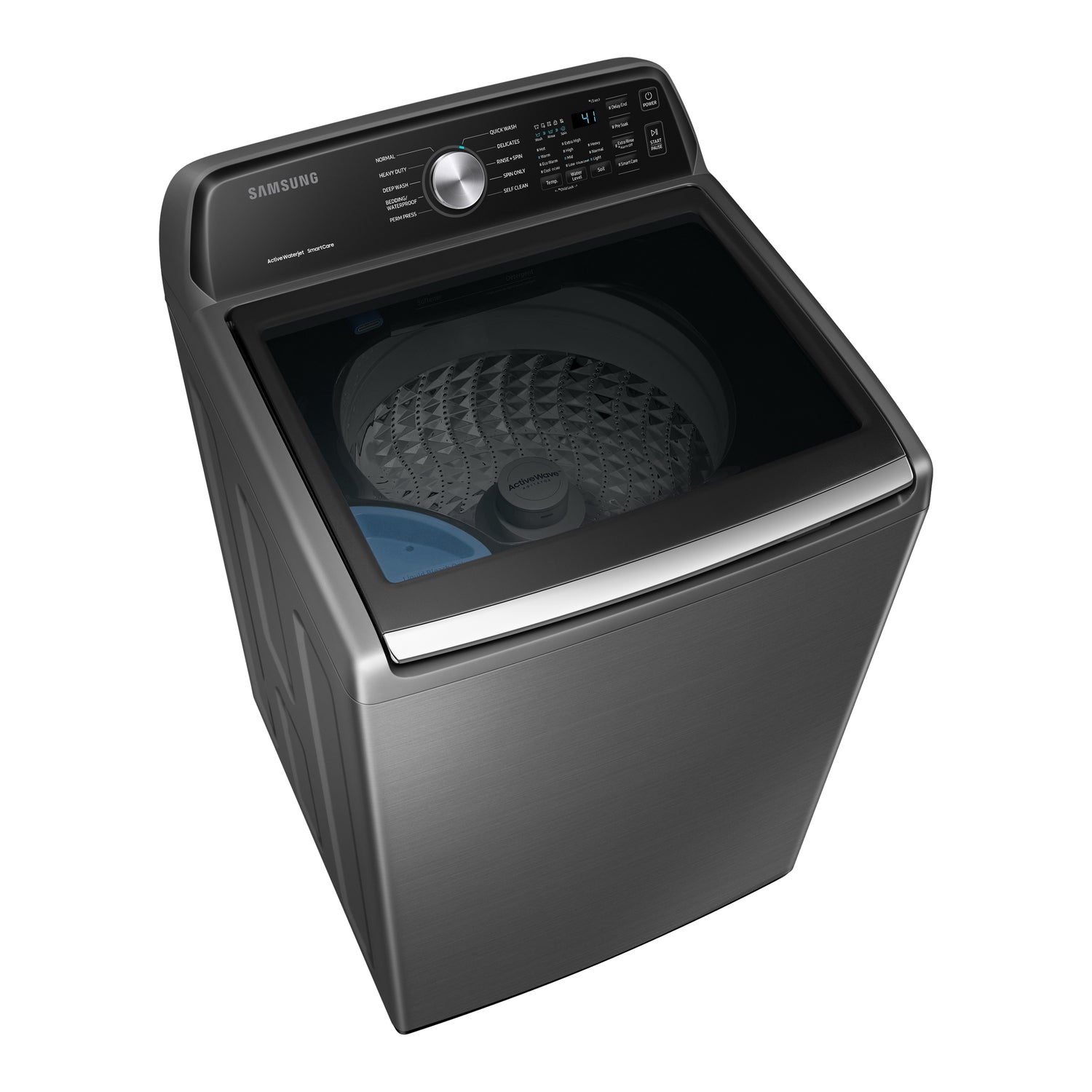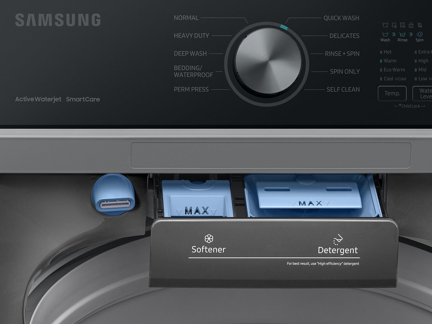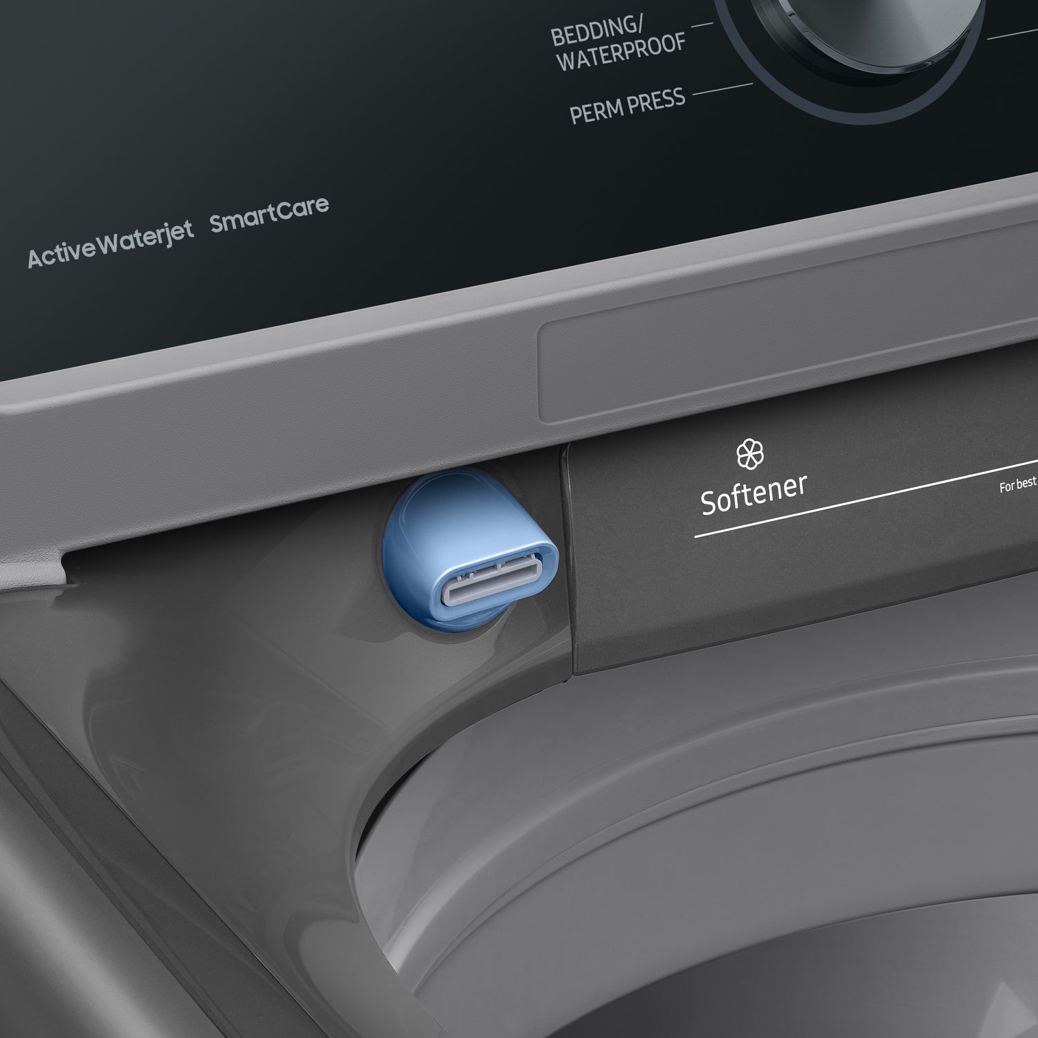 (B)A powerful, yet peaceful clean(/B)(P)Samsung's ActiveWave(TM) Agitator is designed to reduce noise, vibration, and tangling while delivering powerful cleaning.(/P)(BR)(B)Fit more for fewer loads(/B)(P)Fewer loads, less time in the laundry room, and more time doing the things you love.(/P)(BR)(B)Pretreat with a push of a button(/B)(P)A built-in water faucet lets you easily pretreat soiled or heavily stained clothes with a press of a button. Scrub items right inside your washer, no laundry room sink needed.(/P)(BR)(B)10 Preset Washing Cycles(/B)(P)More cycles to cover almost every washing need for your active family.(/P)(BR)(B)Quiet washing anytime, any place(/B)(P)Do your laundry without disturbing anyone at any time and in any place. Innovative Vibration Reduction Technology+ reduces noise and vibration for quiet washing.(/P)(BR)(B)Soft-Close Lid(/B)(P)The premium Soft-Close Lid keeps you and your family protected by closing safely, gently and quietly.(/P)(BR)(B)Extra water when you
