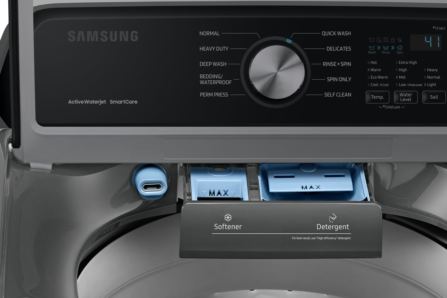(B)Fit more for fewer loads(/B)(P)Fewer loads, less time in the laundry room, and more time doing the things you love.(/P)(BR)(B)Pretreat with a push of a button(/B)(P)A built-in water faucet lets you easily pretreat soiled or heavily stained clothes with a press of a button. Scrub items right inside your washer, no laundry room sink needed.(/P)(BR)(B)Quiet washing anytime, any place(/B)(P)Do your laundry without disturbing anyone at any time and in any place. Innovative Vibration Reduction Technology+ reduces noise and vibration for quiet washing.(/P)(BR)(B)Keep your washer fresh and clean(/B)(P)Keep your washer fresh and clean with Self Clean technology, which eliminates dirt and bacteria that can form in any washer tub. Self Clean will notify you every twenty wash cycles when it is time for a cleaning.(/P)(BR)(B)Extra water when you need it most(/B)(P)Ensure that all of your items are thoroughly soaked by selecting Extra High Water Level before starting your laundry.(/P)(BR)(B)Soft-
