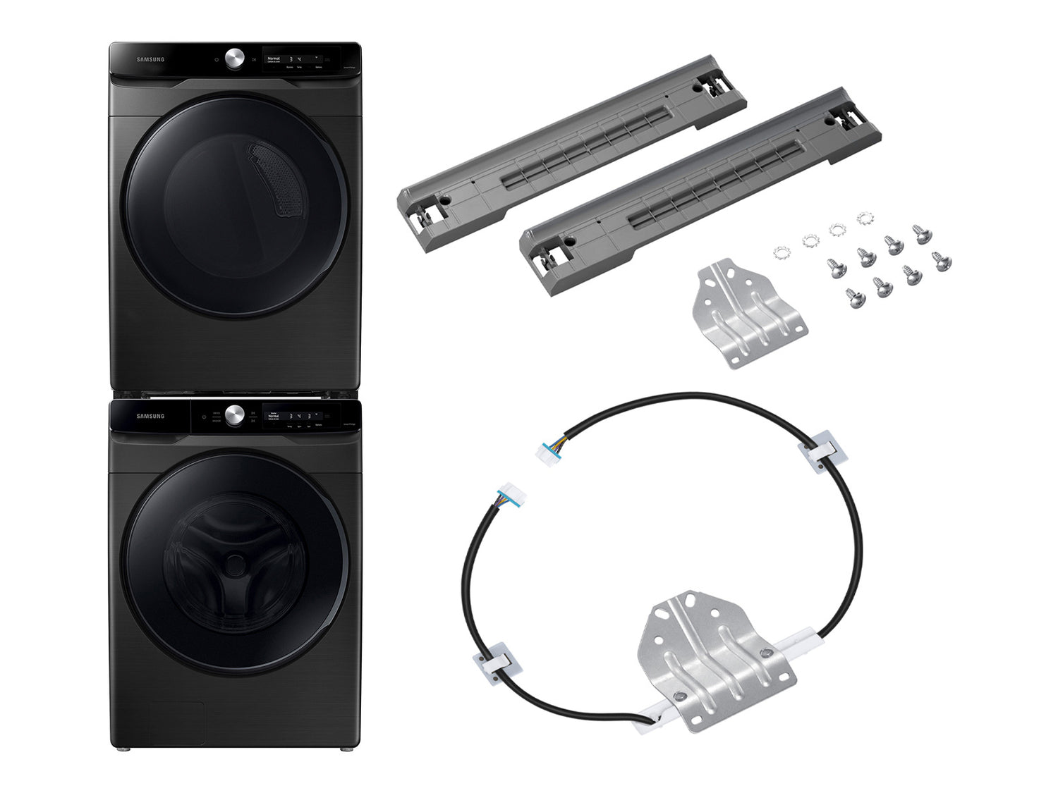 (B)Laundry just got smarter(/B)(P)Samsung's simple to use, AI Powered Smart Dial learns and recommends your favorite wash cycles and allows you to customize your cycle list, change the displayed language, and operate the dryer right from the washer when the units are stacked.*(/P)(BR)(B)No need to reach(/B)(P)Operate your stacked washer and dryer from one, easy to reach centralized control.(/P)(BR)(B)Fits any space(/B)(P)Install your washer and dryer stacked or side by side to fit any space.(/P)(BR)(B)Wash a full load in 28 minutes, wash and dry in under an hour(/B)(P)Wash a full load of laundry with full performance in just 28 minutes* and with an added Super Speed Dryer, achieve a complete wash and dry in under an hour.**(/P)(BR)(B)Fit more for fewer loads(/B)(P)Fewer loads, less time in the laundry room, and more time doing the things you love.(/P)(BR)(B)Control in the palm of your hand(/B)(P)Wi-Fi connected so you can receive end of cycle alerts, remotely start or stop your wash, s