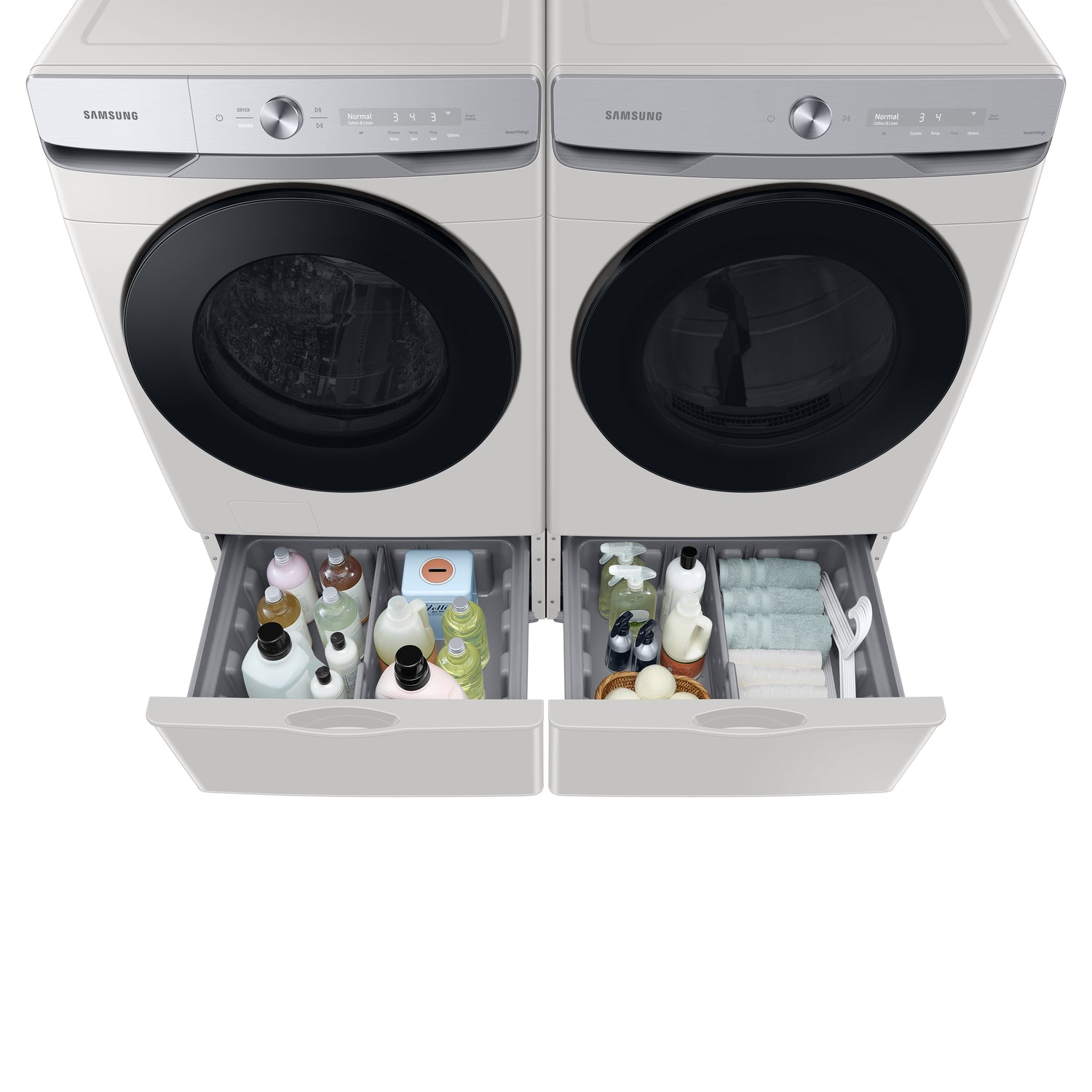 (B)Laundry just got smarter(/B)(P)Samsung's simple to use, AI Powered Smart Dial learns and recommends your favorite wash cycles and allows you to customize your cycle list, change the displayed language, and operate the dryer right from the washer when the units are stacked.*(/P)(BR)(B)No need to reach(/B)(P)Eliminate the long reach and operate your dryer right from your washer when the units are stacked.*(/P)(BR)(B)Fits any space (/B)(P)Install your washer and dryer stacked or side by side to fit any space.(/P)(BR)(B)Wash a full load in 28 minutes, wash and dry in under an hour(/B)(P)Wash a full load of laundry with full performance in just 28 minutes, and with an added Super Speed Dryer, achieve a complete wash and dry in under an hour.*(/P)(BR)(B)Fit more for fewer loads(/B)(P)Fewer loads, less time in the laundry room, and more time doing the things you love.(/P)(BR)(B)Control in the palm of your hand(/B)(P)Wi-Fi connected so you can receive end of cycle alerts, remotely start or