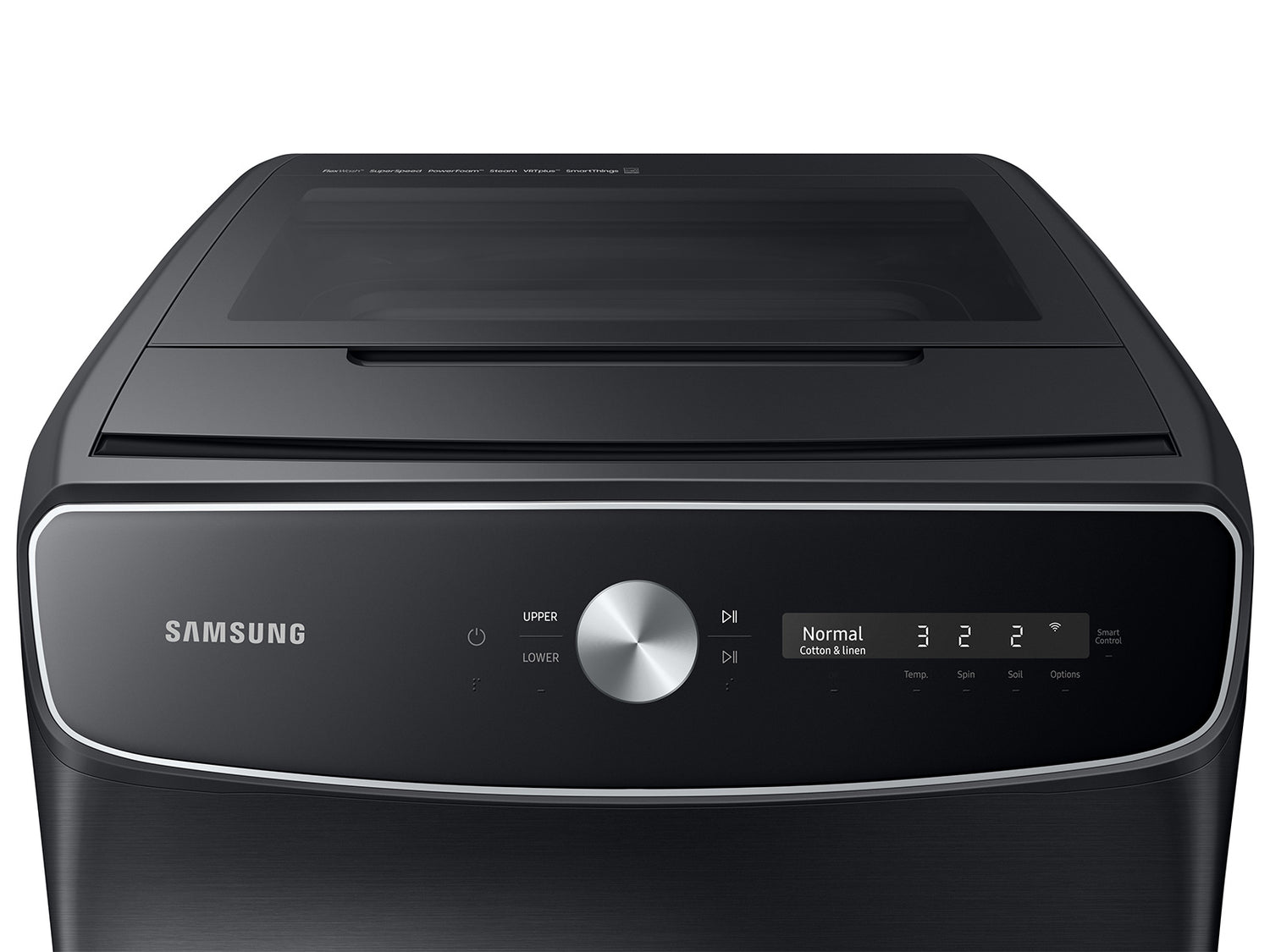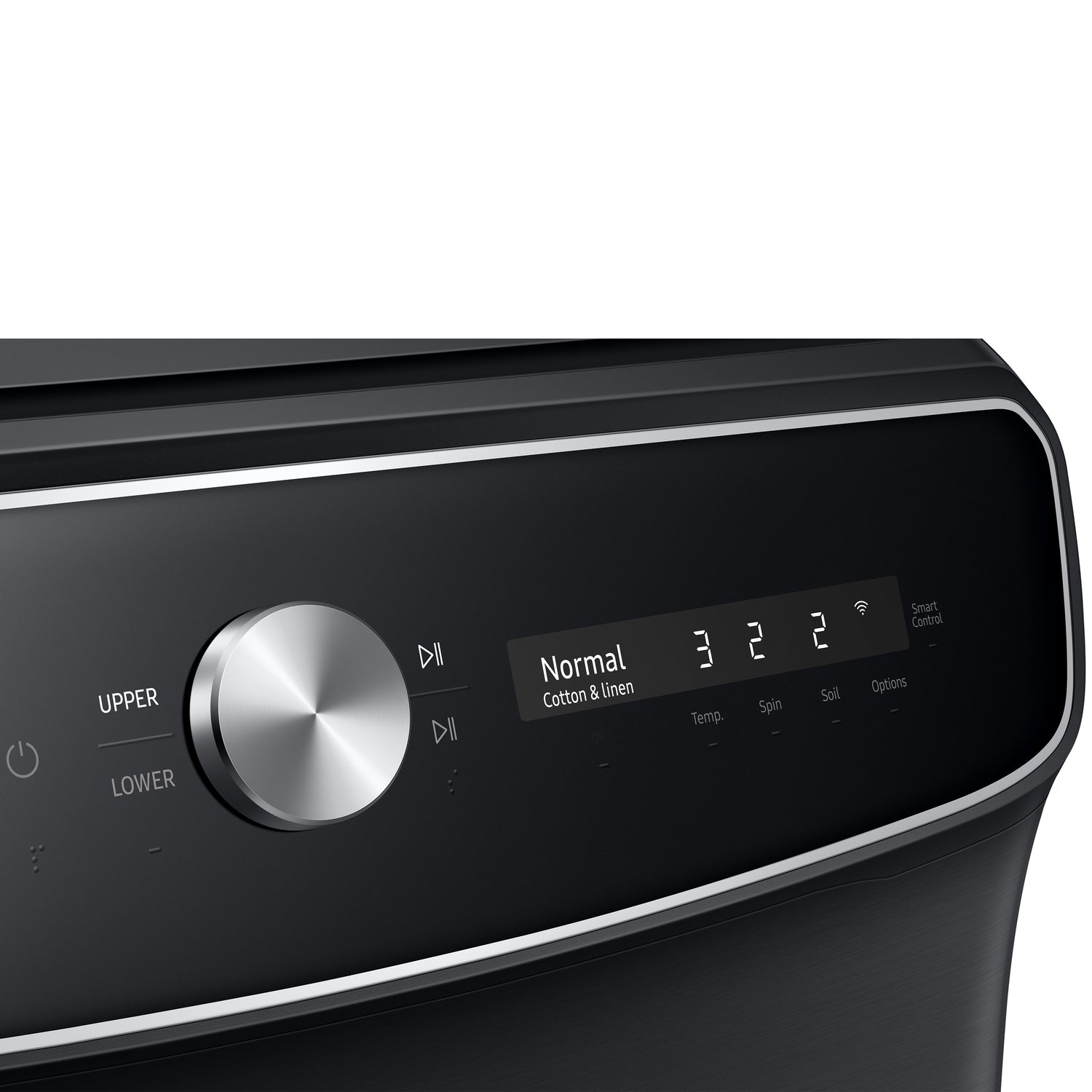 (B)One machine. Two washers.(/B)(P)With two individually controlled washers in one, you can wash separate loads at the same time or independently, and wash each load with different cycles, settings, and options to keep all your clothing and fabric types clean and in great condition.(/P)(BR)(B)Laundry just got smarter(/B)(P)Samsung's simple to use, AI Powered Smart Dial learns and recommends your favorite wash cycles, automatically sets the right dry cycle based on your wash cycle selection, and allows you to customize your cycle list and change the displayed language.(/P)(BR)(B)Wash a full load in 28 minutes, wash and dry in under an hour(/B)(P)Wash a full load of laundry with full performance in just 28 minutes* and, with an added Super Speed Dryer, achieve a complete wash and dry in under an hour.**(/P)(BR)(B)Control in the palm of your hand(/B)(P)Wi-Fi connected so you can receive end of cycle alerts, remotely start or stop your wash, schedule cycles on your time, and more, right fr