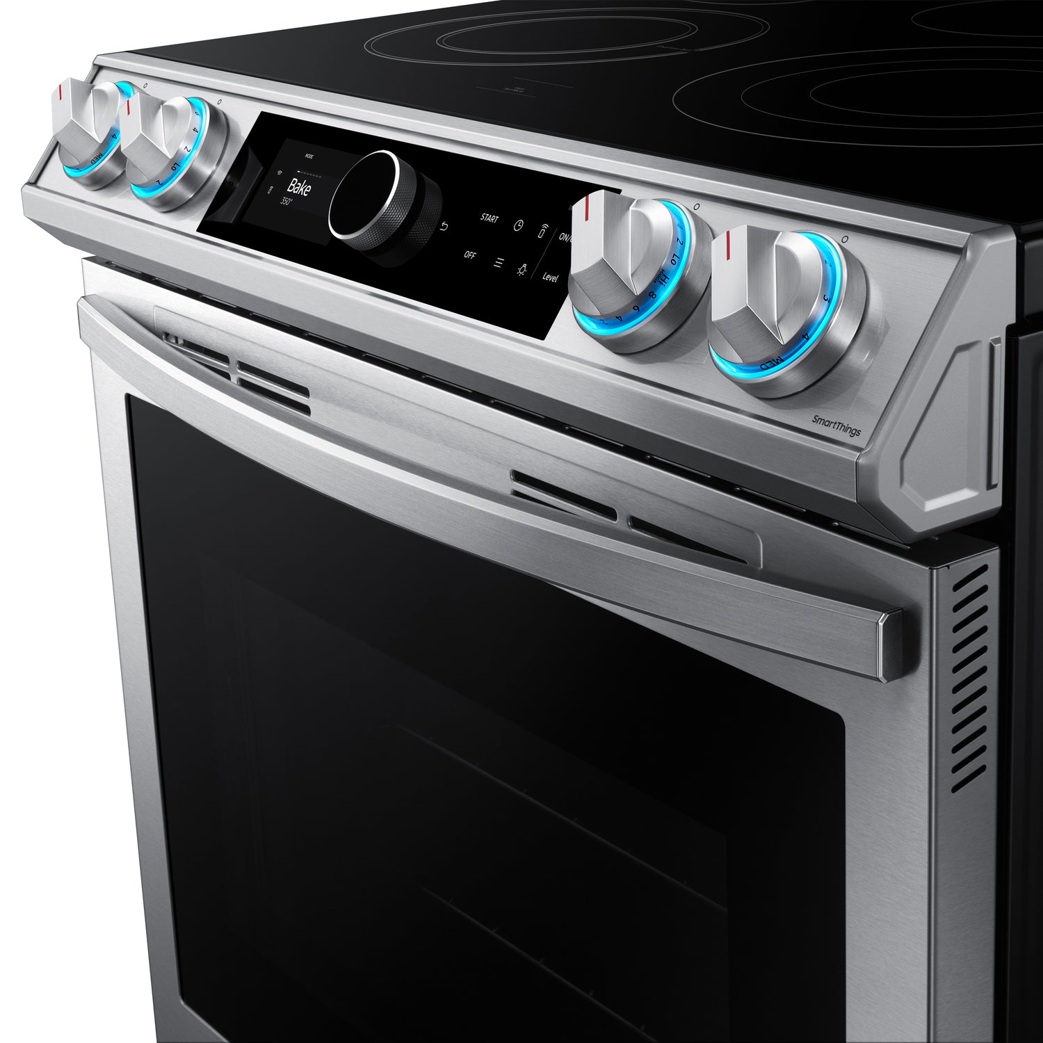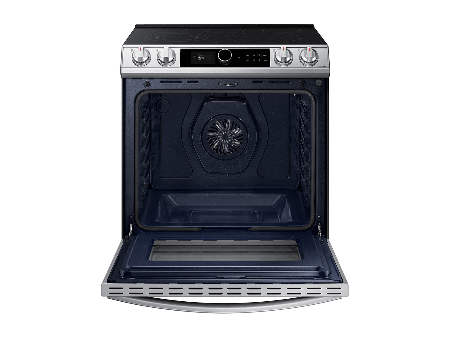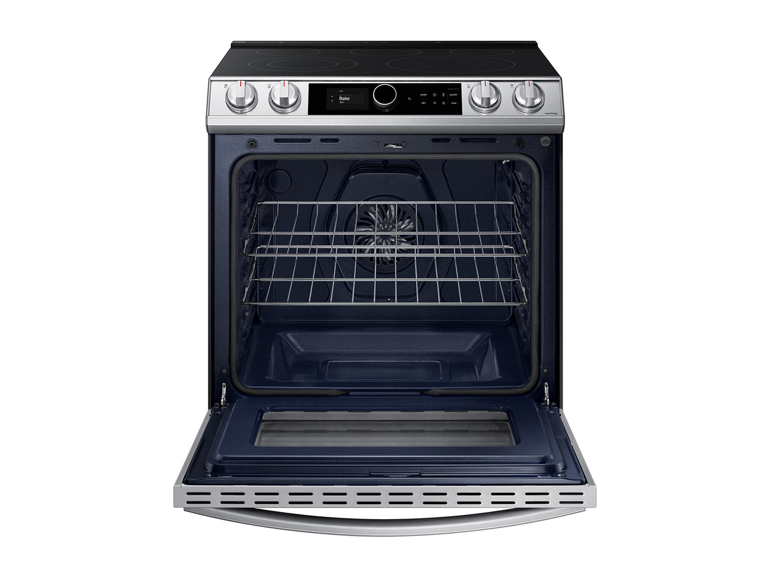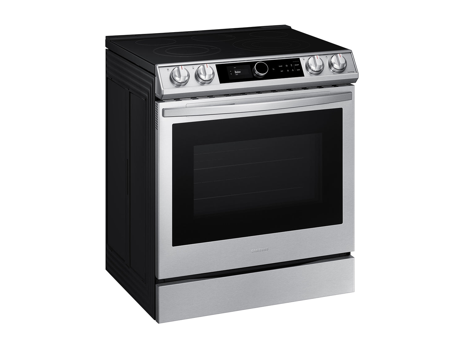 (B)Learns How You Like to Cook(/B)(P)The new Smart Dial simplifies oven settings in a single dial and intuitively learns based on your cooking preferences.(/P)(BR)(B)Air Fry - Healthier* Cooking with a Crunch(/B)(P)Cooking just got healthier* with new Air Fry mode. Using little to no oil, you can quickly prepare your favorite fried foods right in your oven. Air Fry tray included.(/P)(BR)(B)Save Time with Convection+(/B)(P)Powerful Convection+ saves you time by cooking food fast and more evenly. Fan with a heated element circulates hot air in the oven for perfect baking and roasting.(/P)(BR)(B)Illuminated Knobs(/B)(P)Blue illuminated knobs let you know when your cooktop is on or off.(/P)(BR)(B)All Shine(/B)(P)Fingerprint-resistant for an everyday beautiful finish.(/P)(BR)(B)Unbelievably Fast(/B)(P)With Samsung's 3600 W Express Boil(TM) - no element is more powerful.* Rapidly go from high heat for boiling water and searing meat or turn down to a true simmer - ideal for melting chocolate
