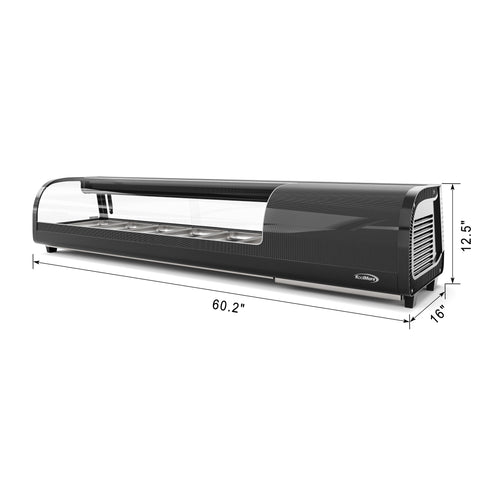 60 in. Glass Sushi Countertop Display Refrigerator with 6 Stainless Steel Trays in Black (KM-SR60-BK)
