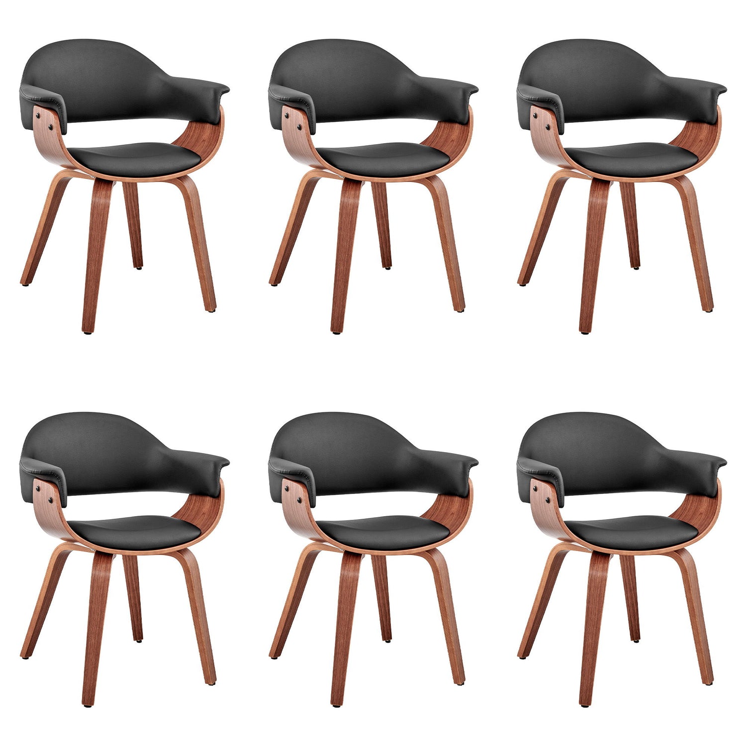 Adalyn - Dining Room Accent Chair (Set of 6) - Black Faux Leather And Walnut Wood