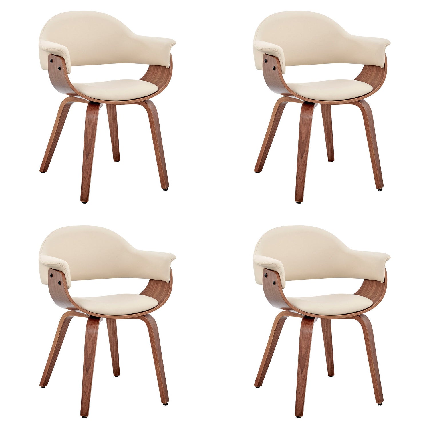Adalyn - Dining Room Accent Chair (Set of 4) - Cream Faux Leather And Walnut Wood