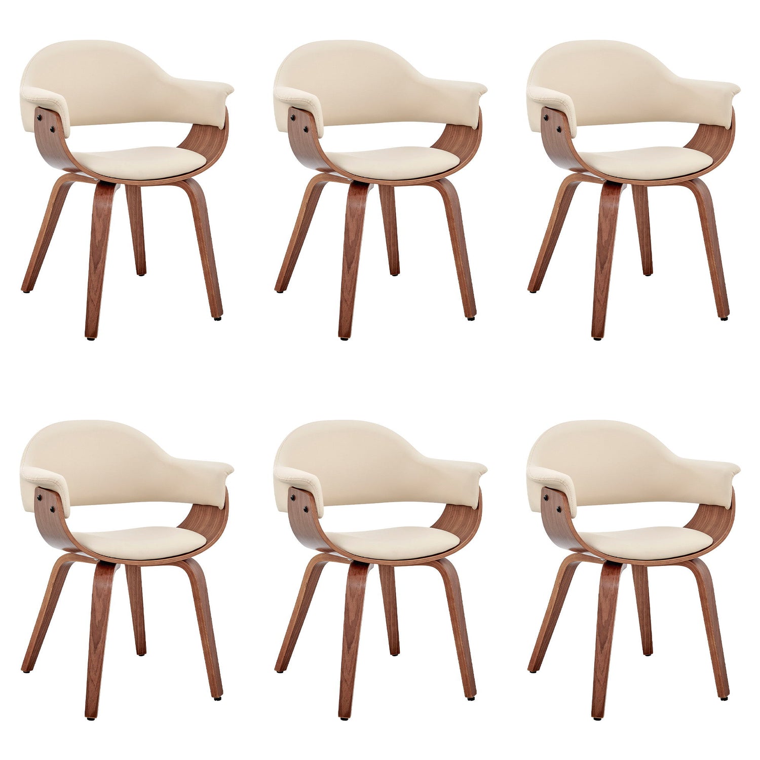 Adalyn - Dining Room Accent Chair (Set of 6) - Cream Faux Leather And Walnut Wood