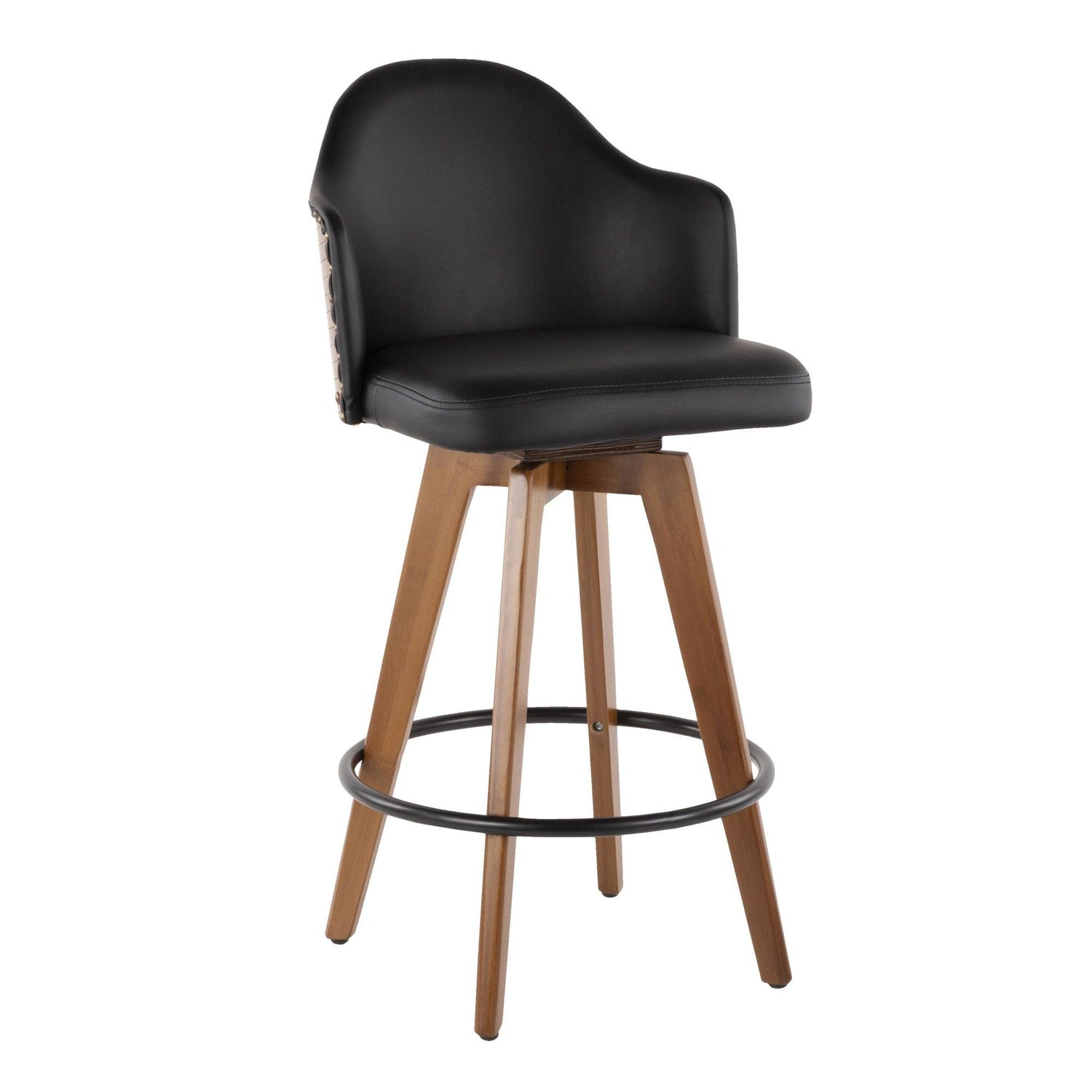 Ahoy - Counter Stool - Walnut Wood And Black Faux Leather