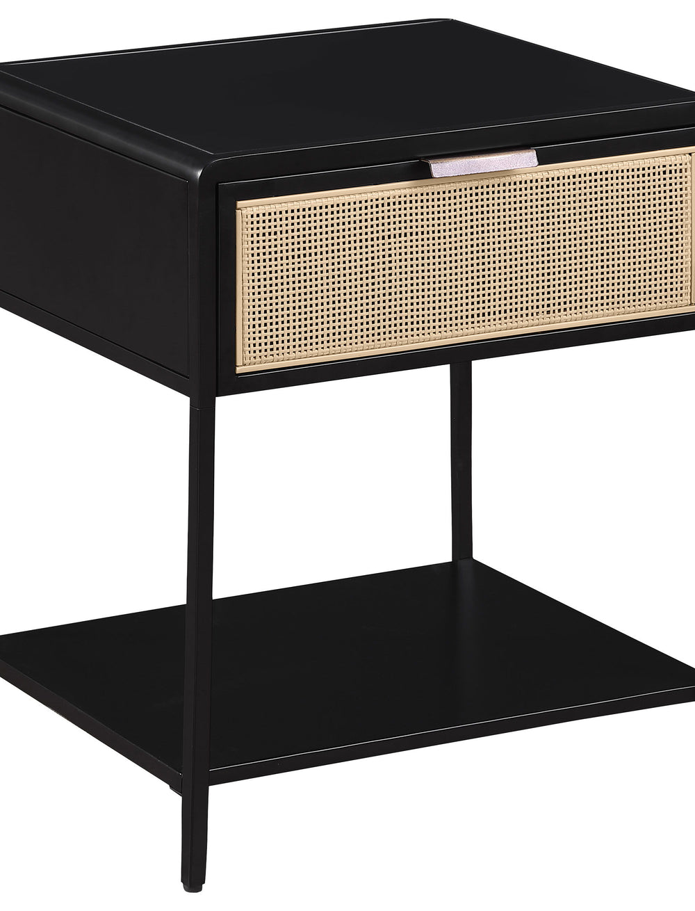 Amherst - 1-Drawer Radio Weave Rattan Metal Side Table - Black