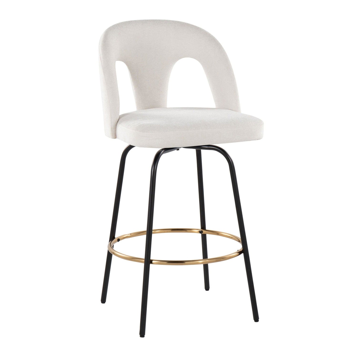 Ava - Upholstered Fixed-Height Counter Stool (Set of 2) - Black Metal, Snow White Fabric, Gold Metal