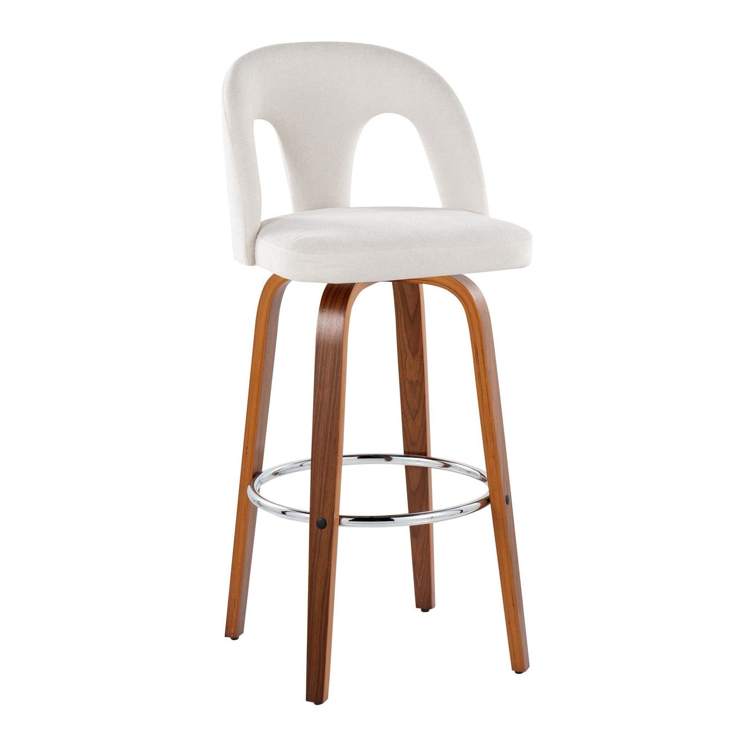 Ava - Upholstered Fixed-Height Barstool (Set of 2) - Walnut Wood, Snow White Fabric, Chrome Metal