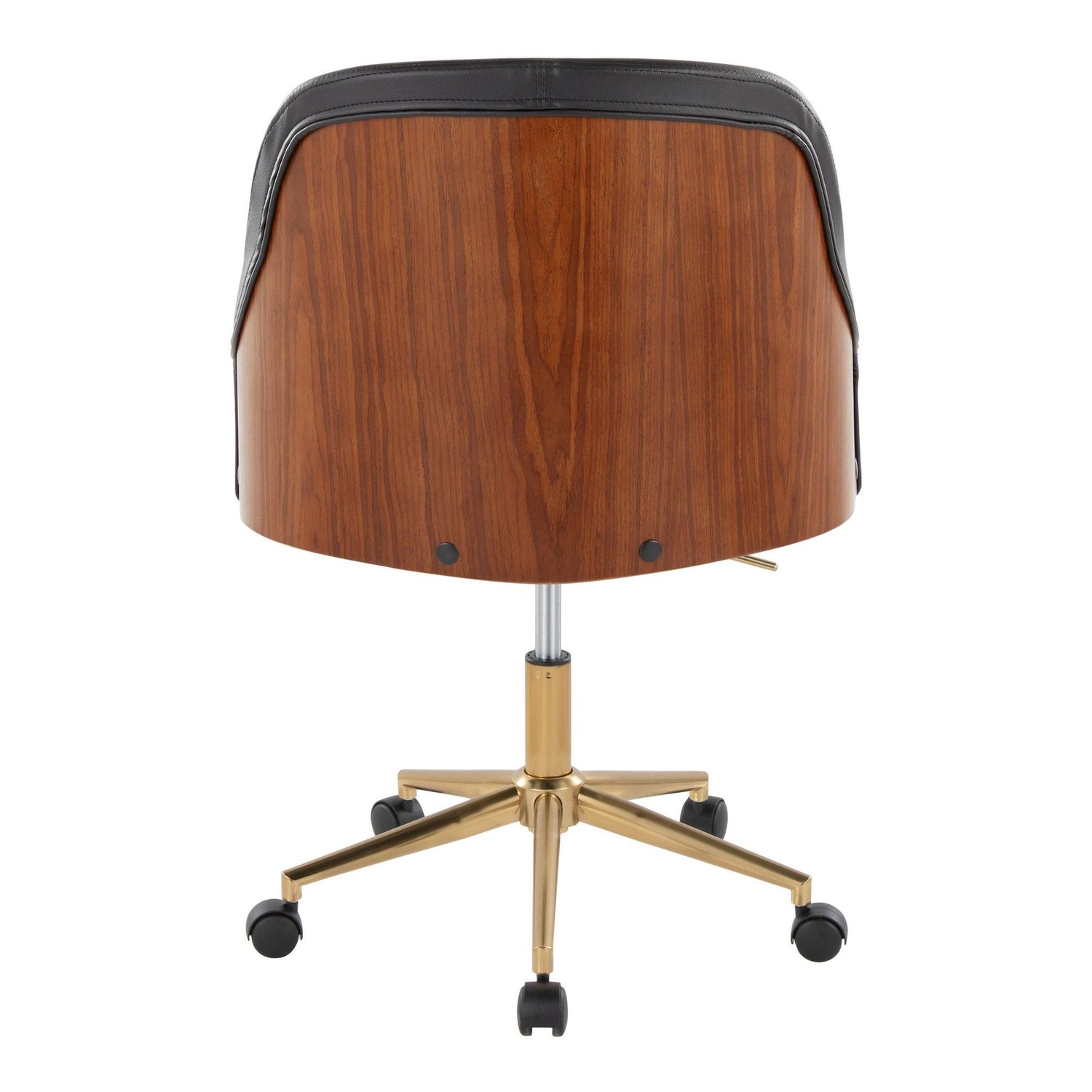 Bacci - Office Chair - Gold Metal, Walnut Wood, And Black Faux Leather