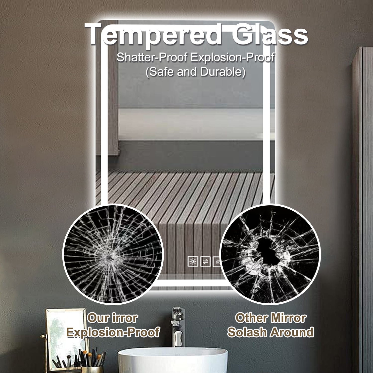 Bathroom Mirror With LED Lights Front And Backlit, Anti-Fog Lighted Vanity Mirrors For Wall Mounted And 5 Level Dimmable, Horizontal / Vertical - Clear