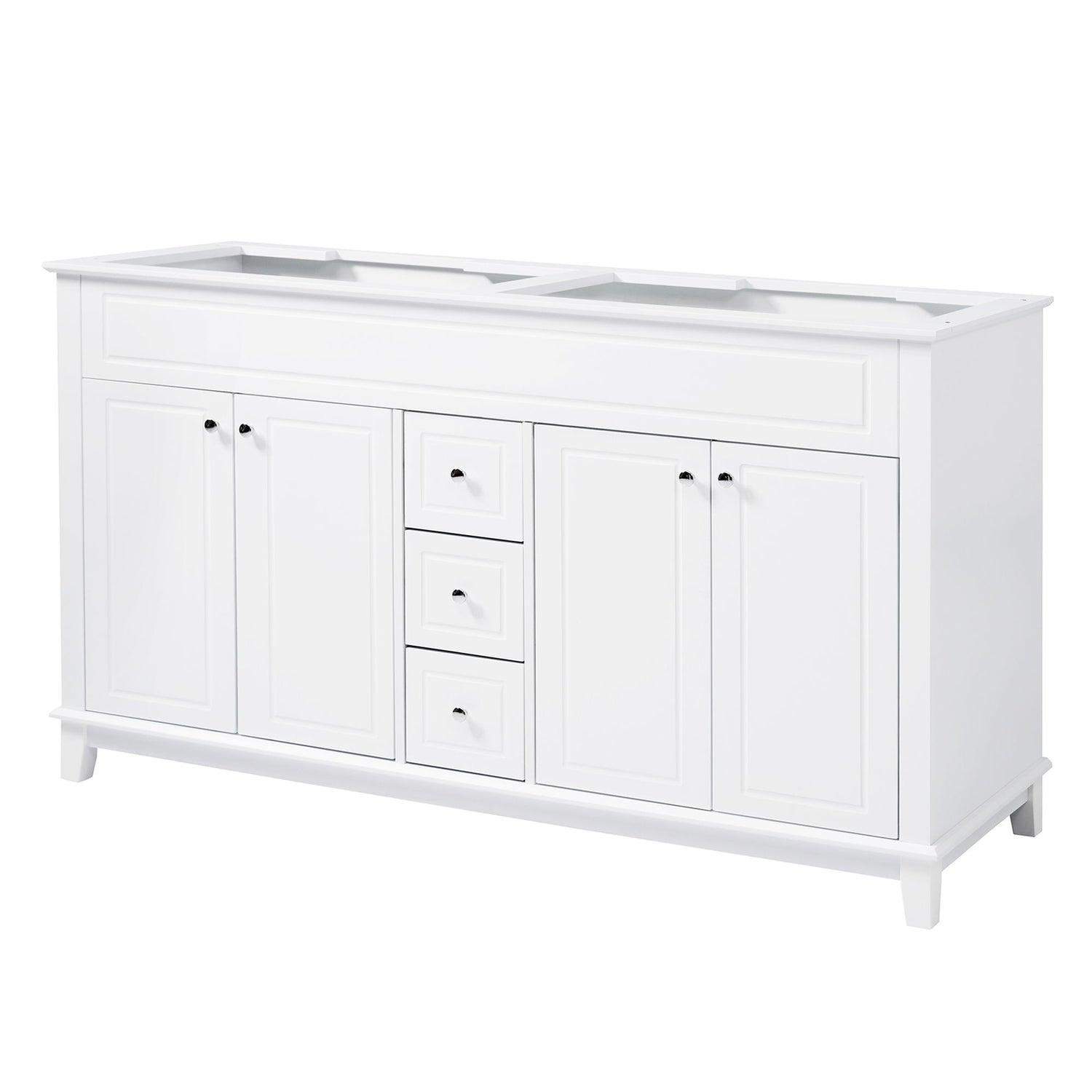 Bathroom Vanity Cabinet Only, 3 Drawers & 4 Doors With Double Layer Shelves - White