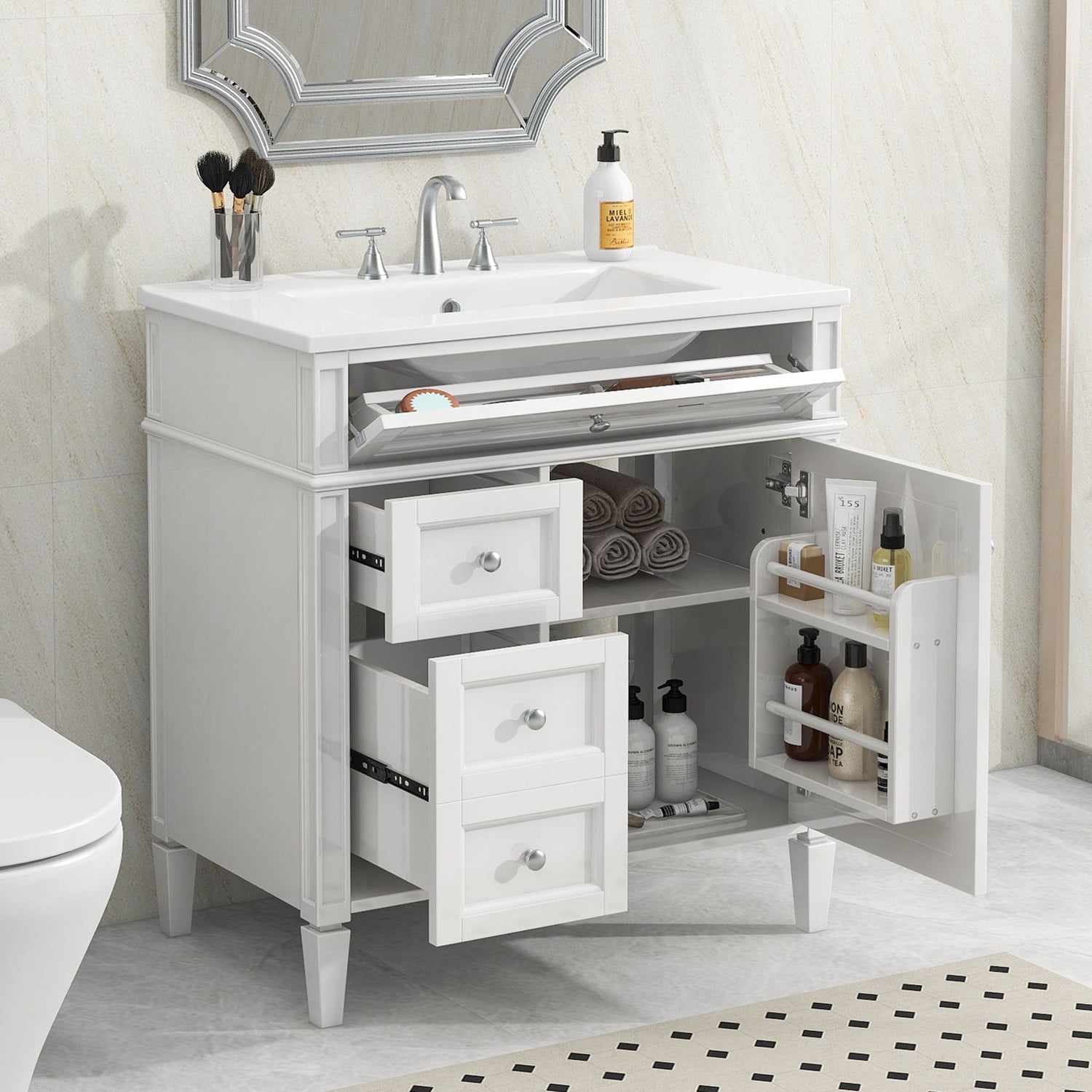Bathroom Vanity & Top Sink, Modern Bathroom Storage Cabinet, 2 Drawers And A Tip-Out Drawer, Single Sink Bathroom Vanity - White