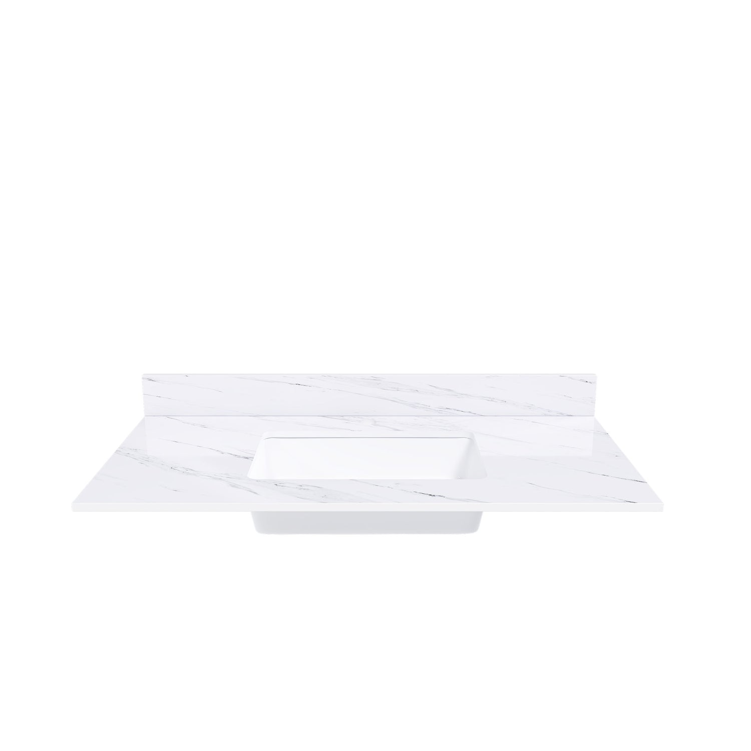 Bianco Carrara Venato 43" Marble Vanity Top With 1 Pre Drilled Faucet Hole Sintered Stone Bathroom Vanity Top With Undermount Rectangular Sink And 4" Backsplash - White