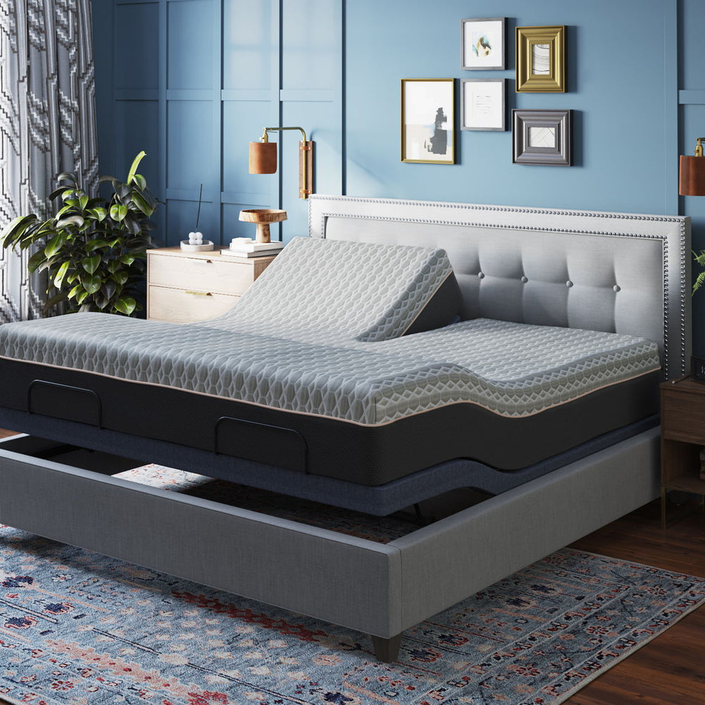 Bt3000 - Flex Head Queen Adjustable Bed Base With Head And Foot Position Adjustment - Blue / Gray