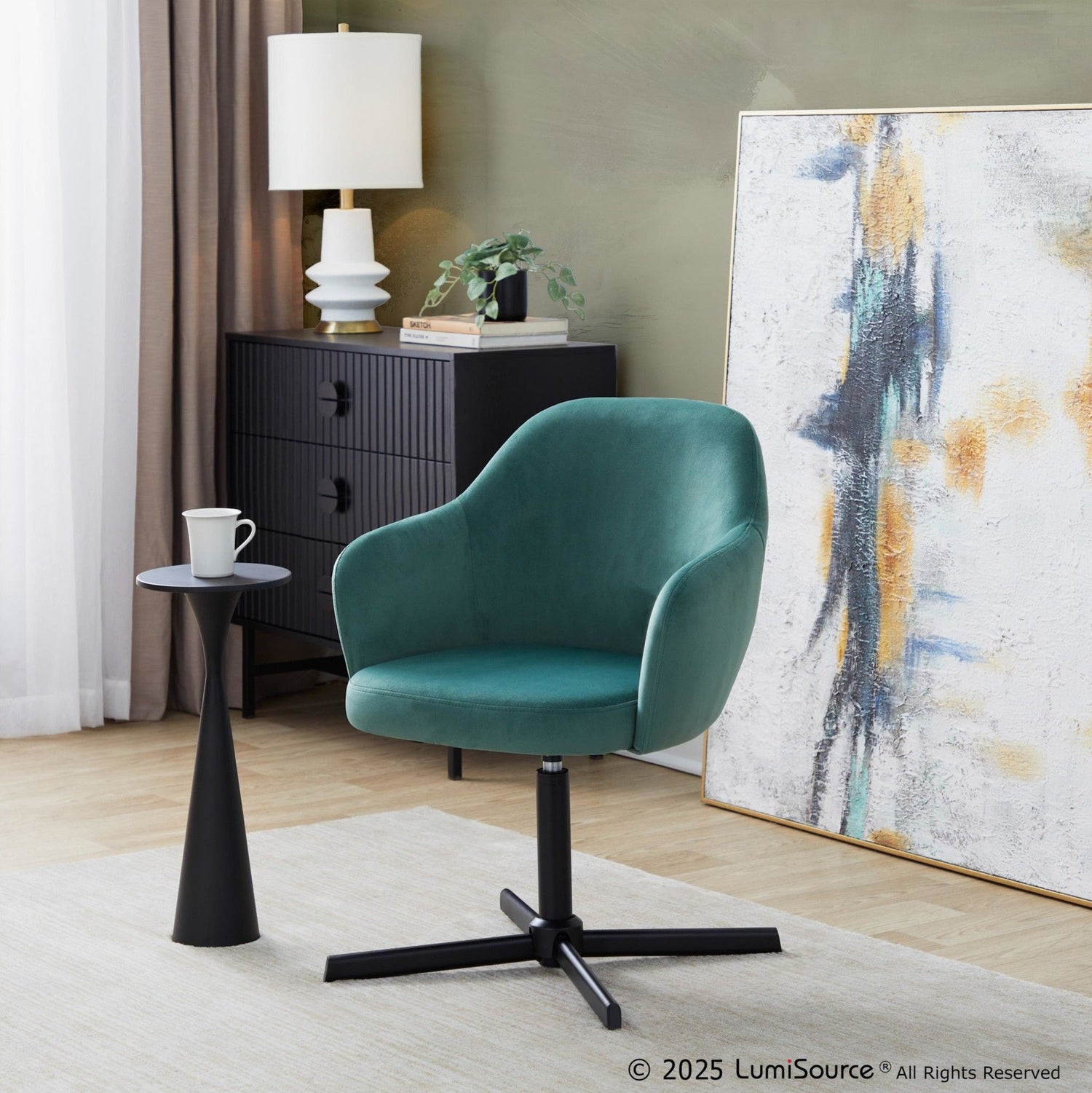 Buena - Swivel Accent Chair - Black Metal, Green Velvet